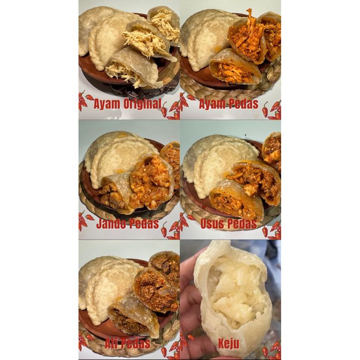 Ayam pedas , Ayam ori , Usus pedas, Jando pedas , Keju , Ati ampela pedas, Baso Pedas