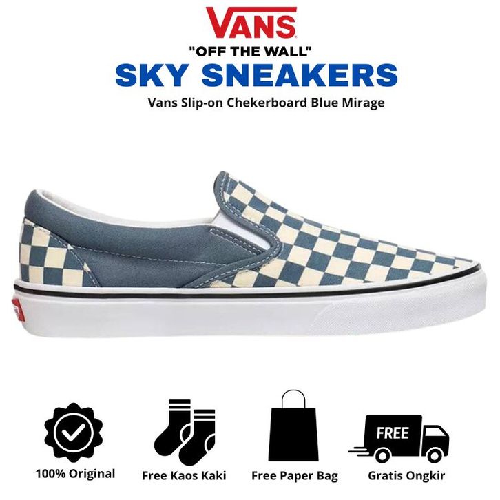 [Mall] SEPATU VANS ORIGINAL SNEAKER PRIA WANITA SEPATU VANS SLIP-ON CHEKERBOARD BLUE MIRAGE CLASSIC 100% ORIGINAL