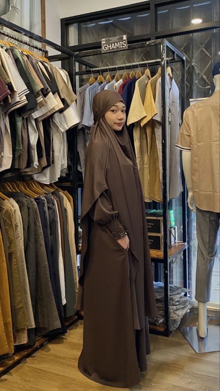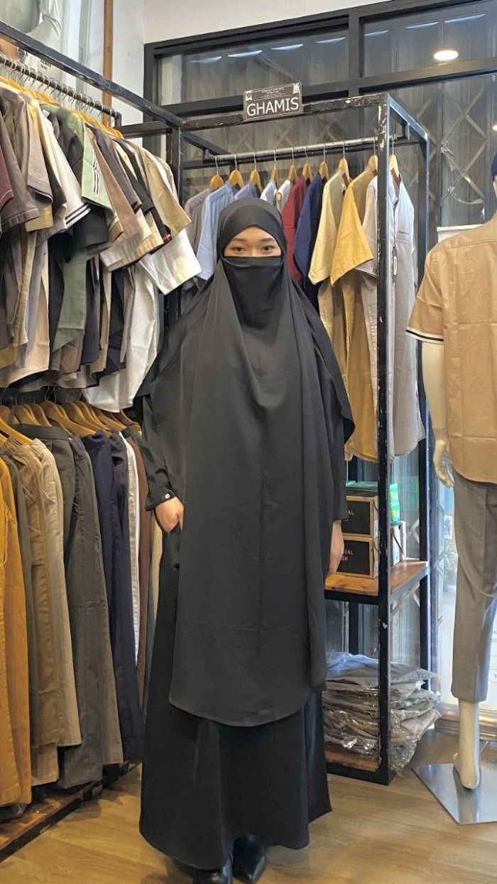 SAMASE Abaya Baju Gamis Wanita V French Khimar Set Gamis Set Khimar Umroh Abaya Umroh - Jrt Black