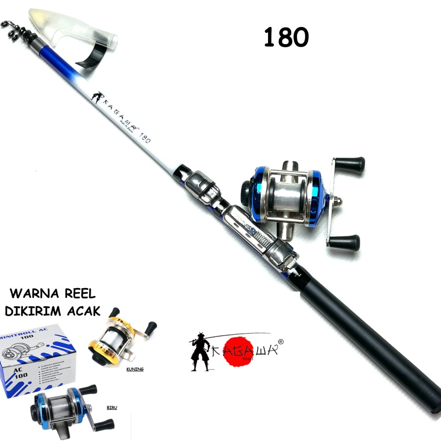 Joran Tegek Kolong Pancing Udang Ruas Pendek Kagawa 45cm sama Reel - 180 +reel AC100