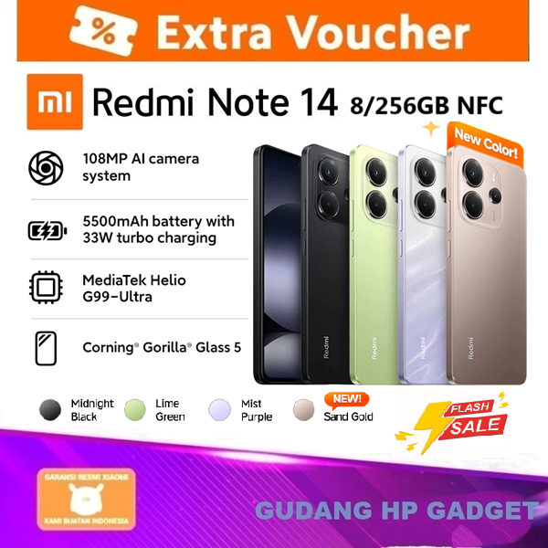 HP REDMI NOTE 14 8/256GB GARANSI RESMI NFC 108 MP AI Camera MediaTek Helio G99 Ultra