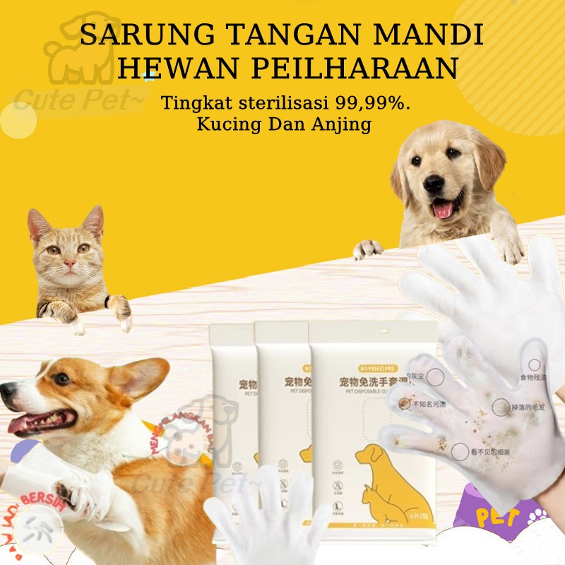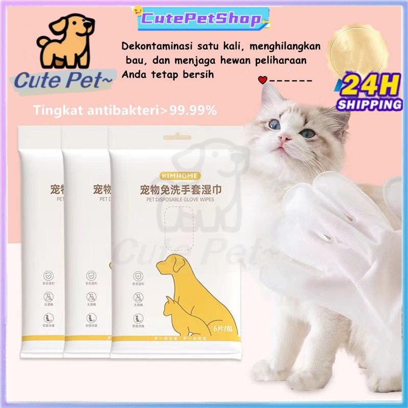 Tisu Basah Kucing Anjing - Sarung Tangan Pet Grooming - Sarung Tangan Mandi Kucing Tanpa Air Tanpa Bilas