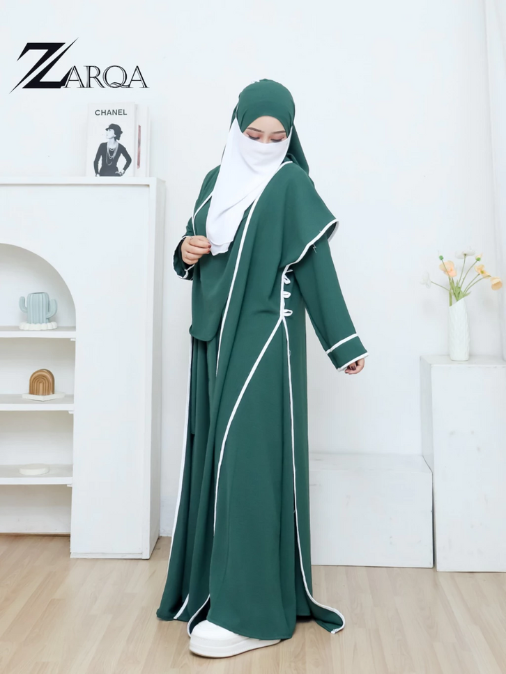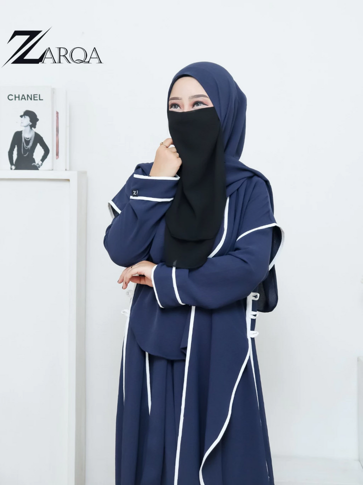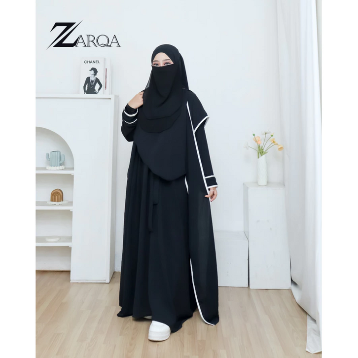 ZARQA-Maura Abaya Hitam Putih Turkey Abaya Set 2 in 1 (outer + dress terpisah) Remaja Gamis Muslim