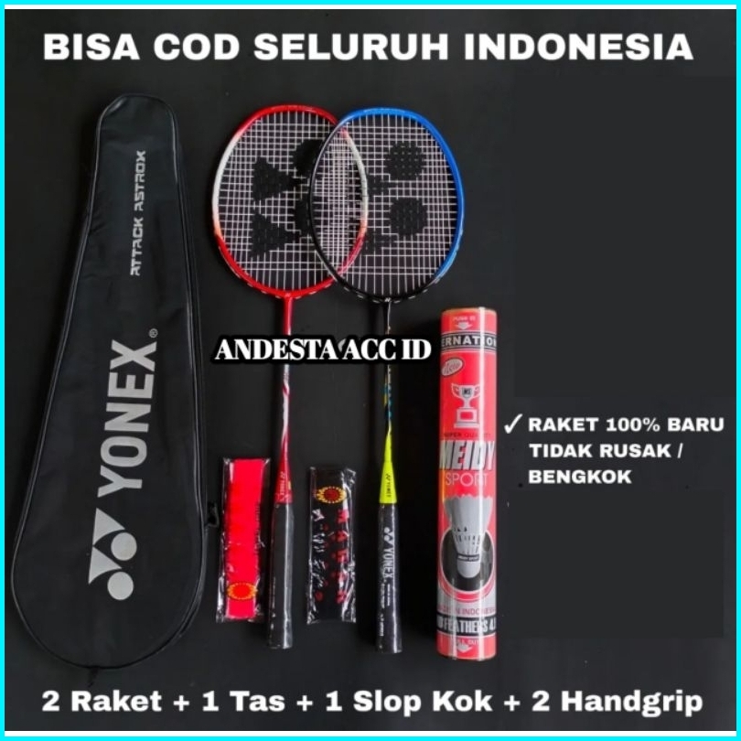 Raket Badminton Paket Lengkap Model Senyawa 2 Raket 2 Grip 12 Kok 1 Tas
