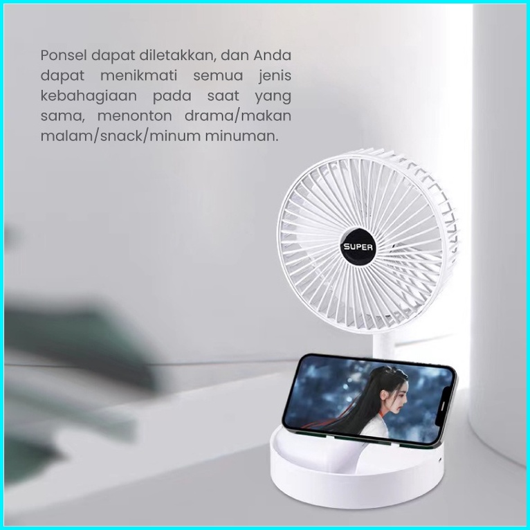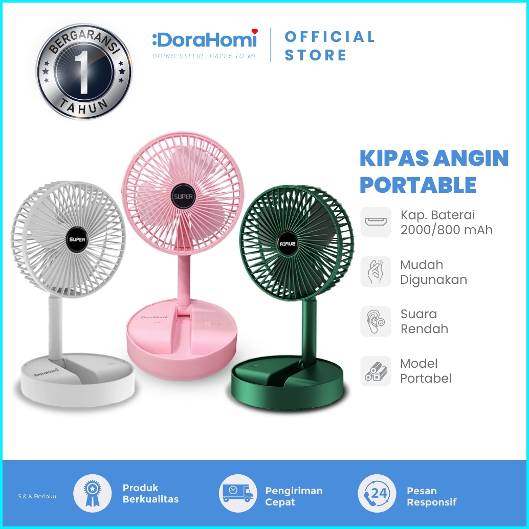 Dorahomi Kipas Angin Meja Lipat Portable Berdiri Usb Cas Baterai 2000mah Putar Naik Dan Turun 180 Cocok Untuk Kantor Per