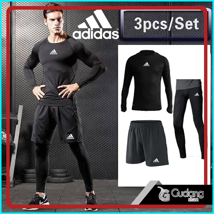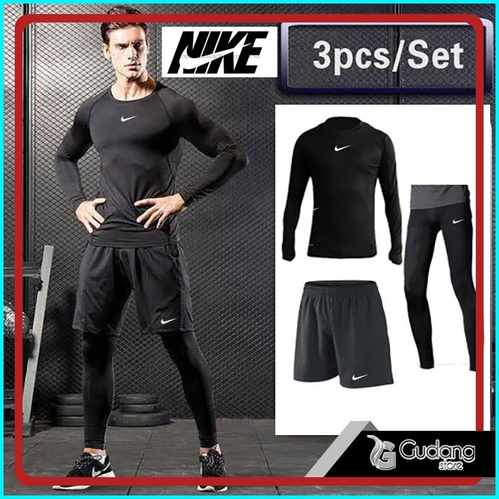 Fullset Paket Setelan Pakaian Olahraga Panjang Baselayer Legging Manset Sepeda Futsal Volly Basket Sepakbola Badminton B
