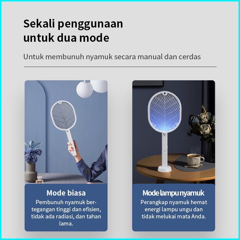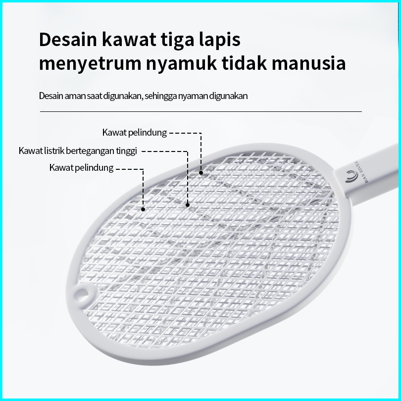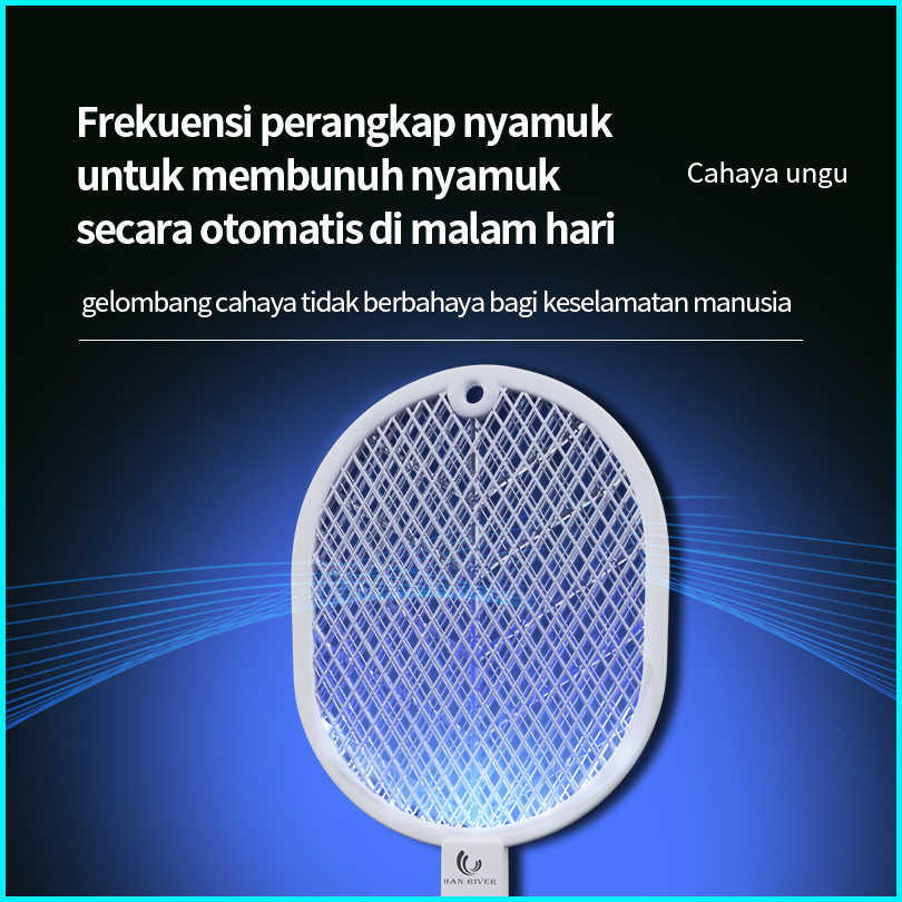 Han River Raket Nyamuk 2 In 1 Mosquito Killer Hrdwp01wt Putih Dengan Basis