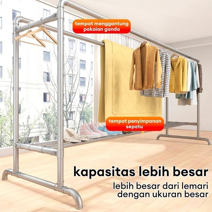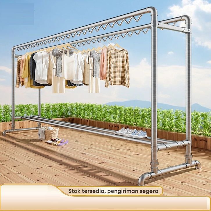 Rak Gantungan Baju Tabung Baja Serbaguna Jemuran Baju Stainless Steel Jemuran Pakaian Jemuran Hanger