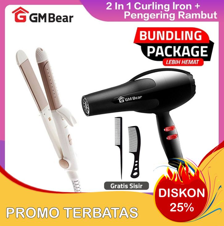 GM Bear Bundle Hemat Hair Dryer Pengering Rambut 1115 - Catokan Rambut 2in1 Catokan Rambut Curly 1173