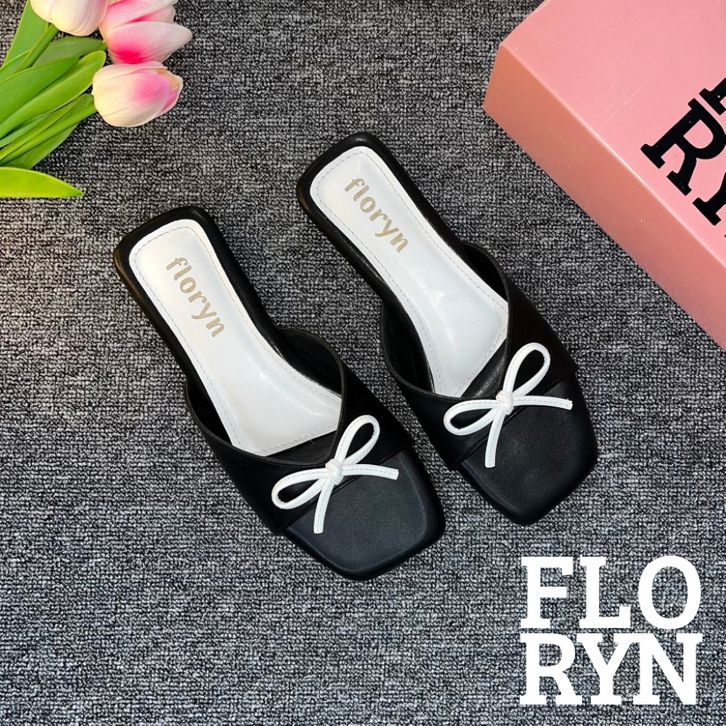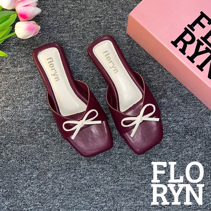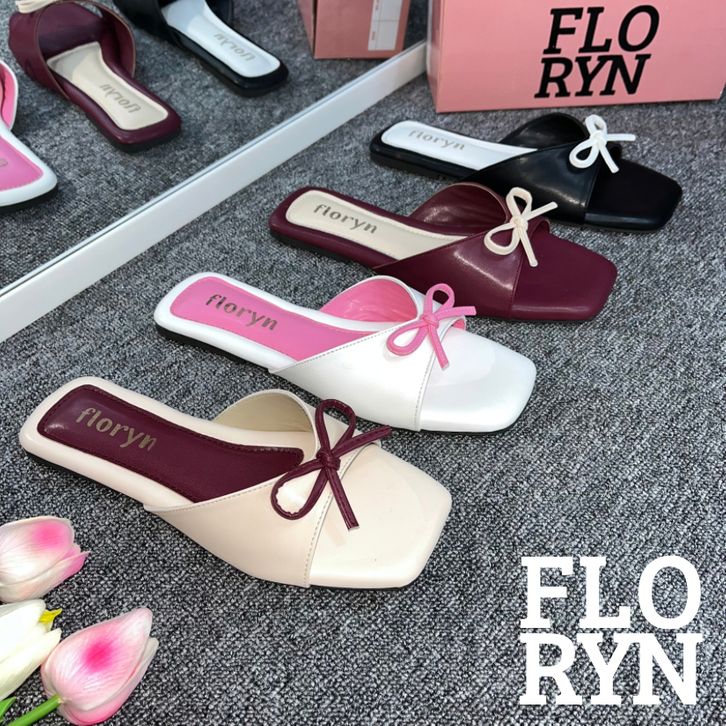 Harga Diskon Floryn Shoes - Windy Sandal Teplek Wanita Coquette Slop Tali Pita Kombinasi Casual Kekinian Terbaru