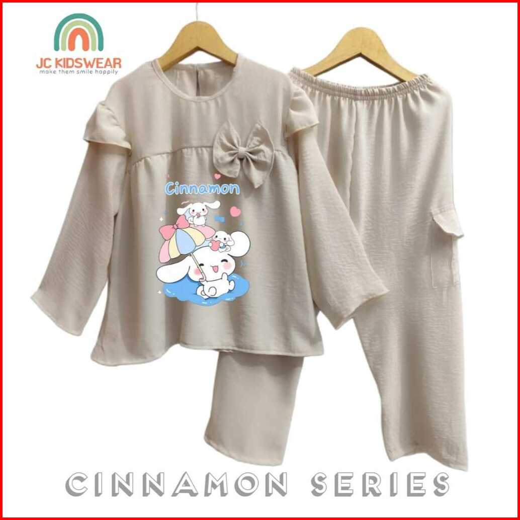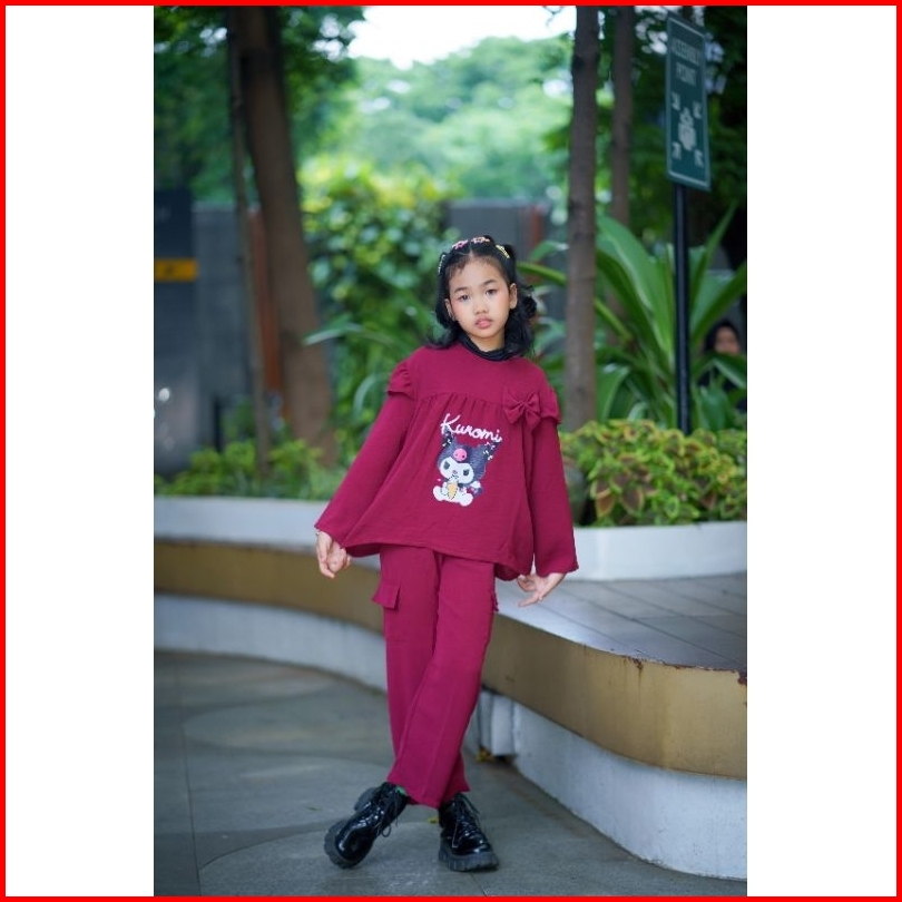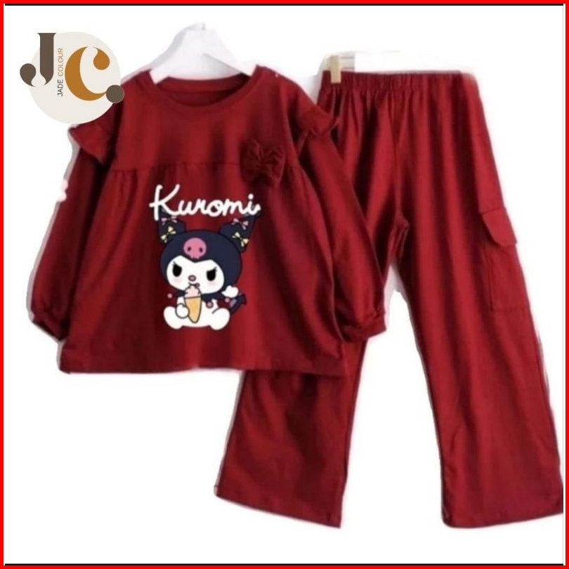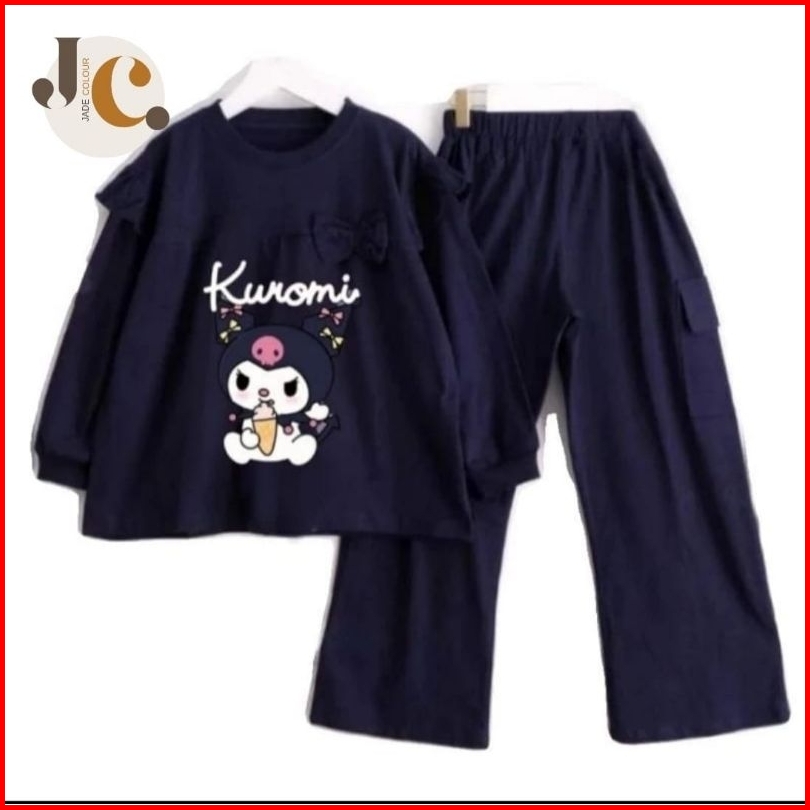 Jc Kidswear Setelan Anak Perempuan Motif Kuromi Labu Labu Cinamon Crinkel Airflow Usia 4-13 Tahun