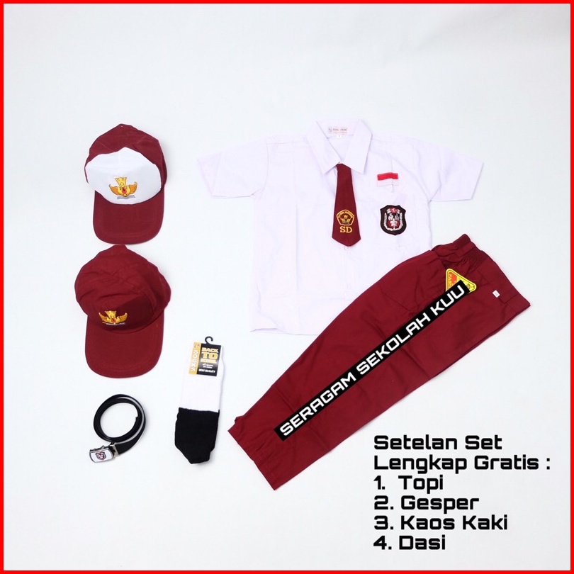 Setelan Super Lengkap Seragam Sekolah Sd Laki Baju Pendek Celana Panjang Cowok