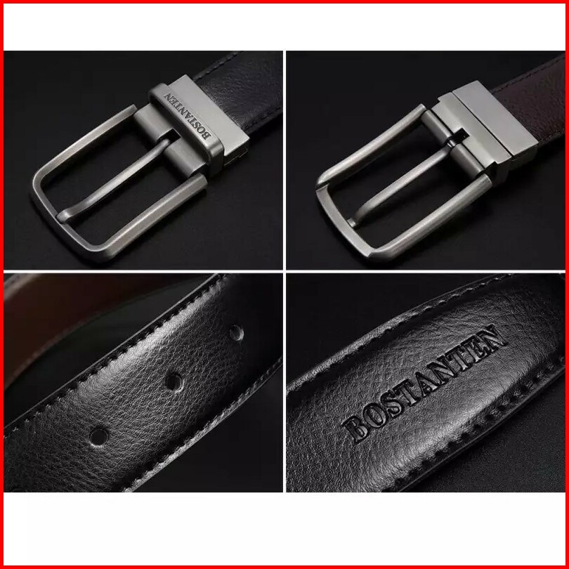 Bostanten Sabuk Ikat Pinggang Pria Warna Hitam Bahan Kulit Sapi Asli