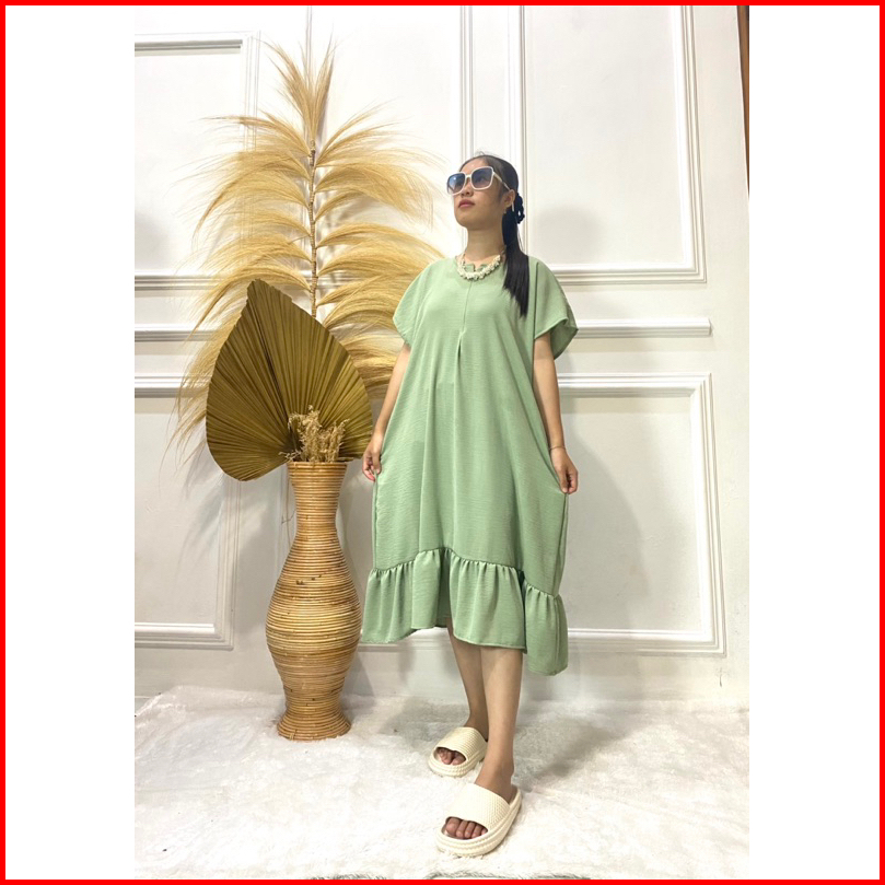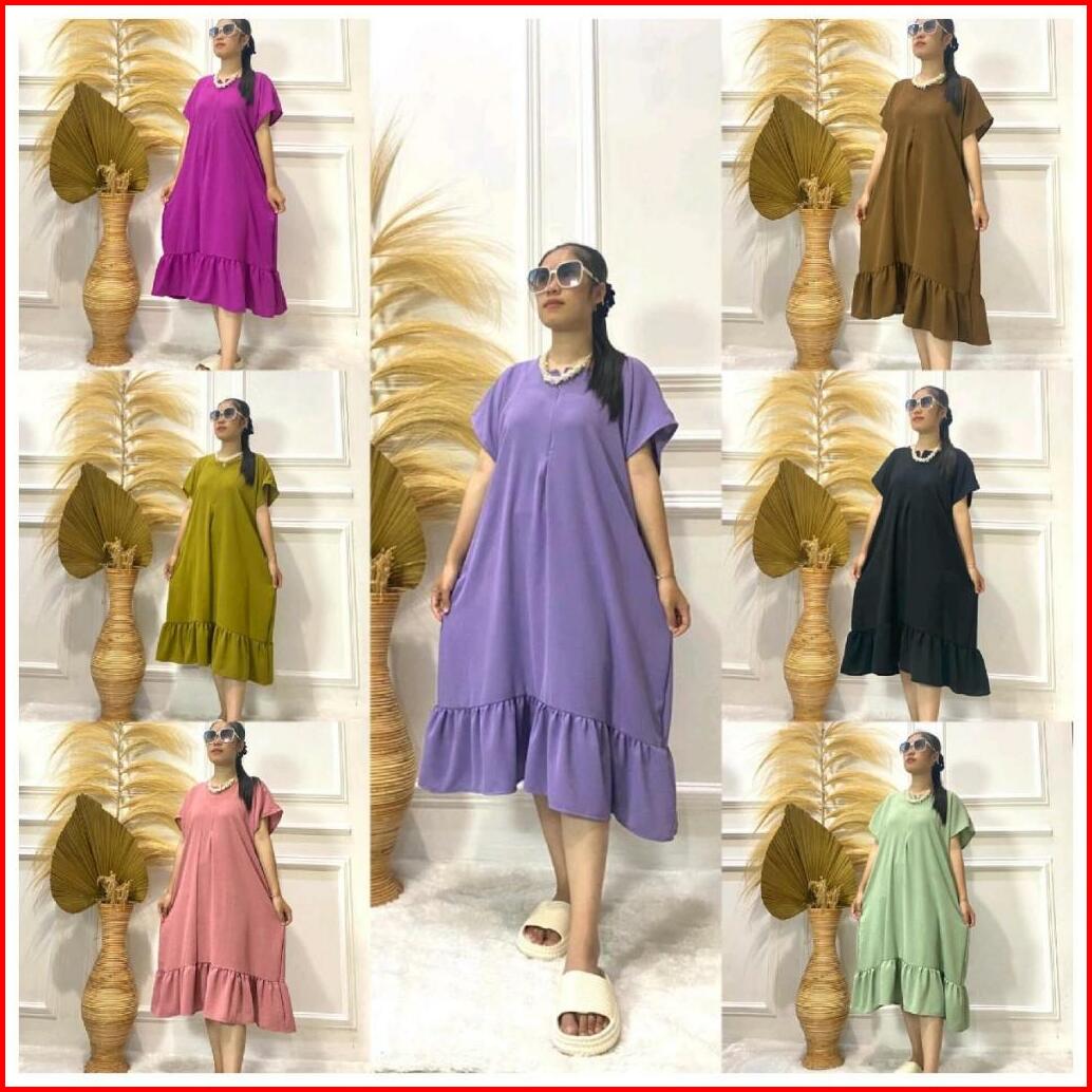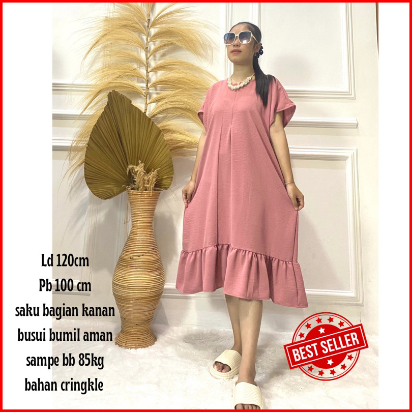 Dress Viral Daster Kekinian Wanita Jumbo Busui Bumil Crinkle Airflow