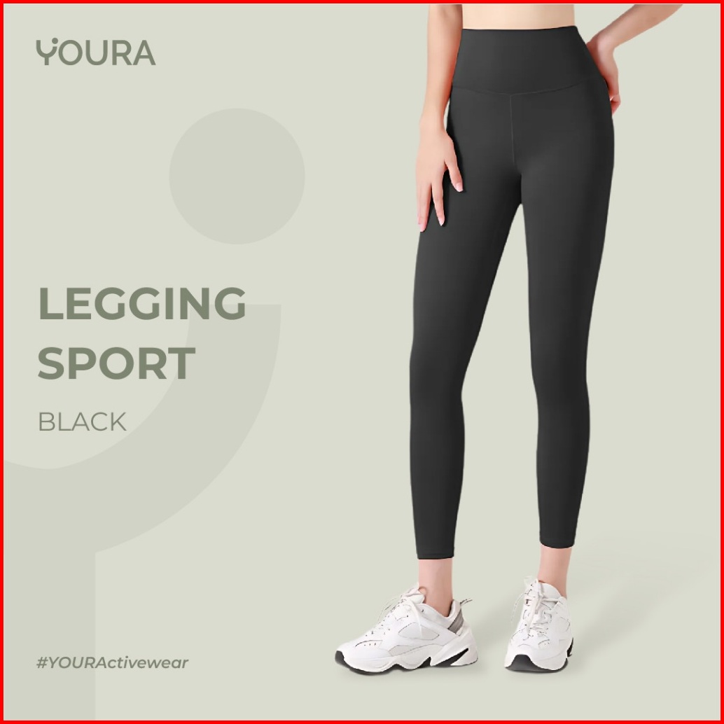 Youra - Legging Celana Olahraga Wanita High Quality Black Hitam