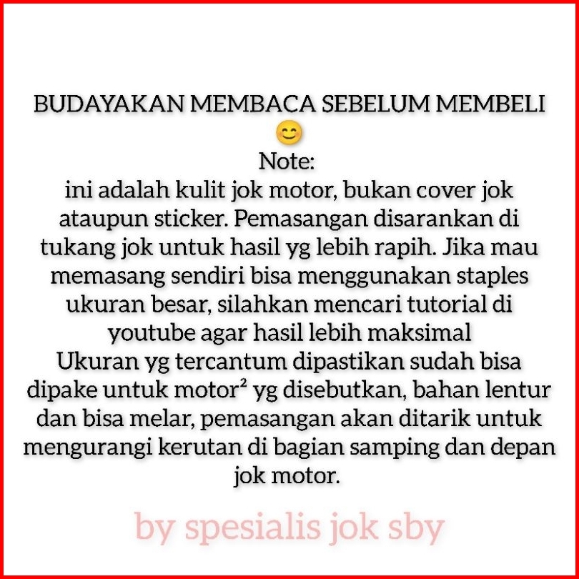 Kulit Jok Motor Mbtech Original Kulit Jok Motor Universal Kulit Jok Motor Premium Kulit Jok Hitam