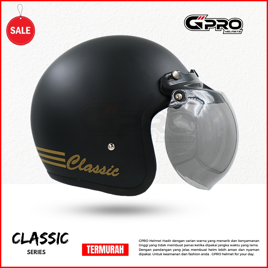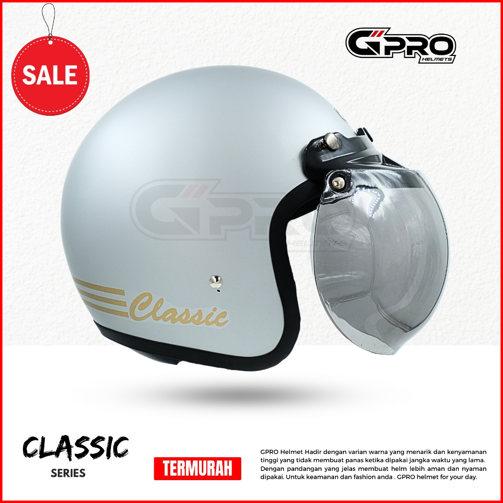 Gpro - Helm Bogo Classic Dewasa Full Leher Pria Wanita Cepol Model Terbaru Sni 36