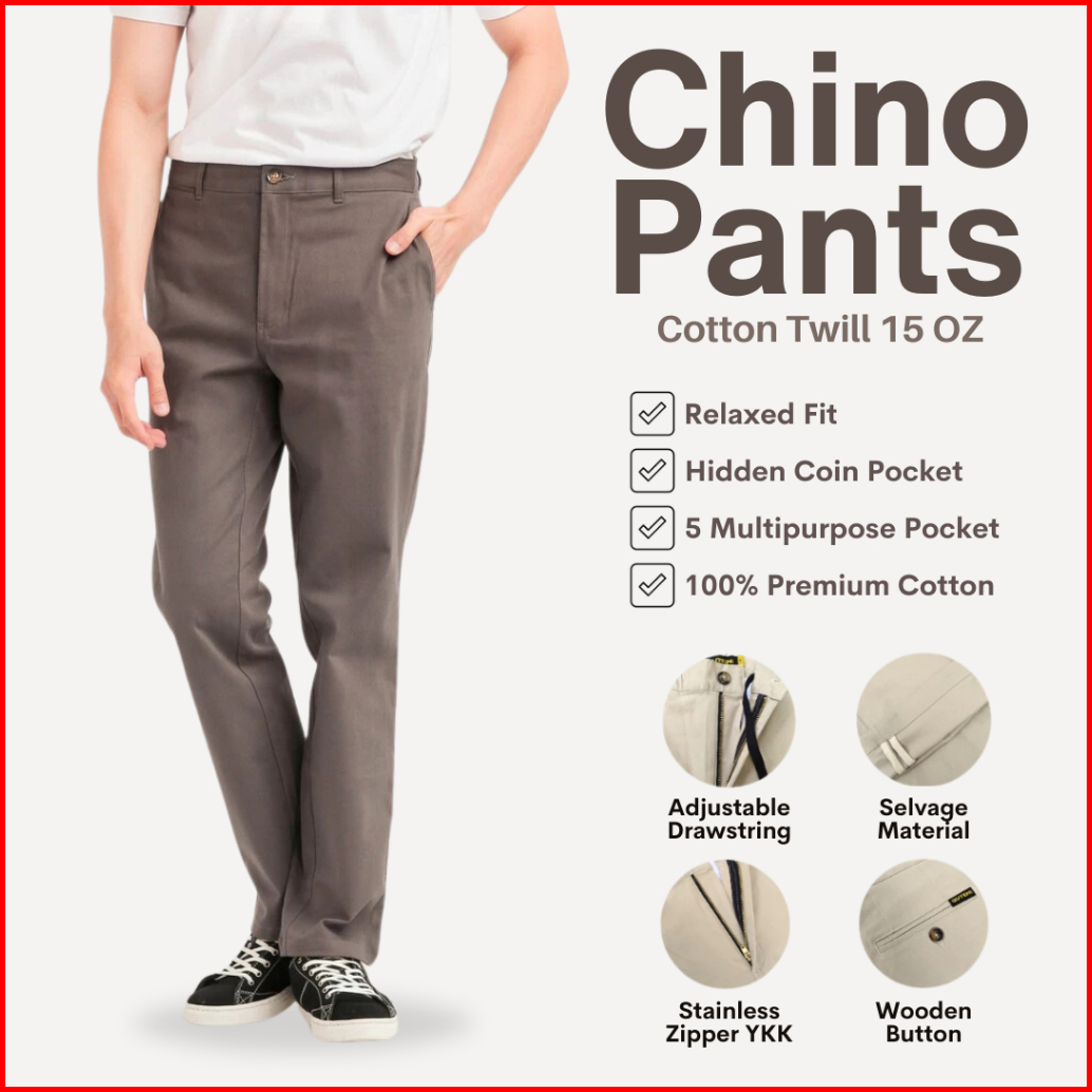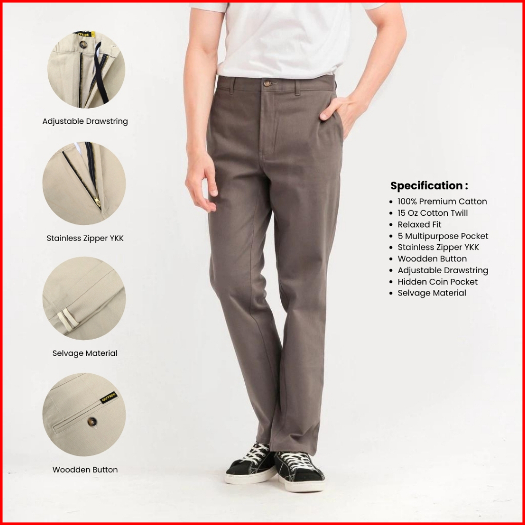 Guten Inc - Best Seller Celana Abu-abu Polos Casual Formal Chino Pants Panjang Fabio Grey Bahan Twill Premium Quality