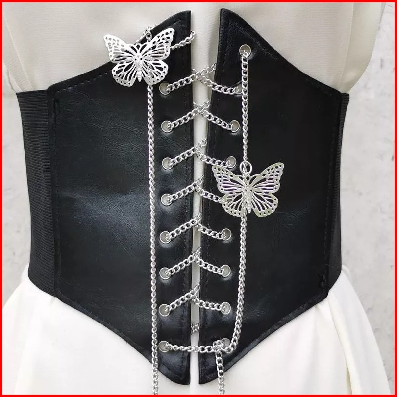 Belt Korset Sabuk Wanita Rantai Kupu Gotik Ikat Pinggang Renda Bustier