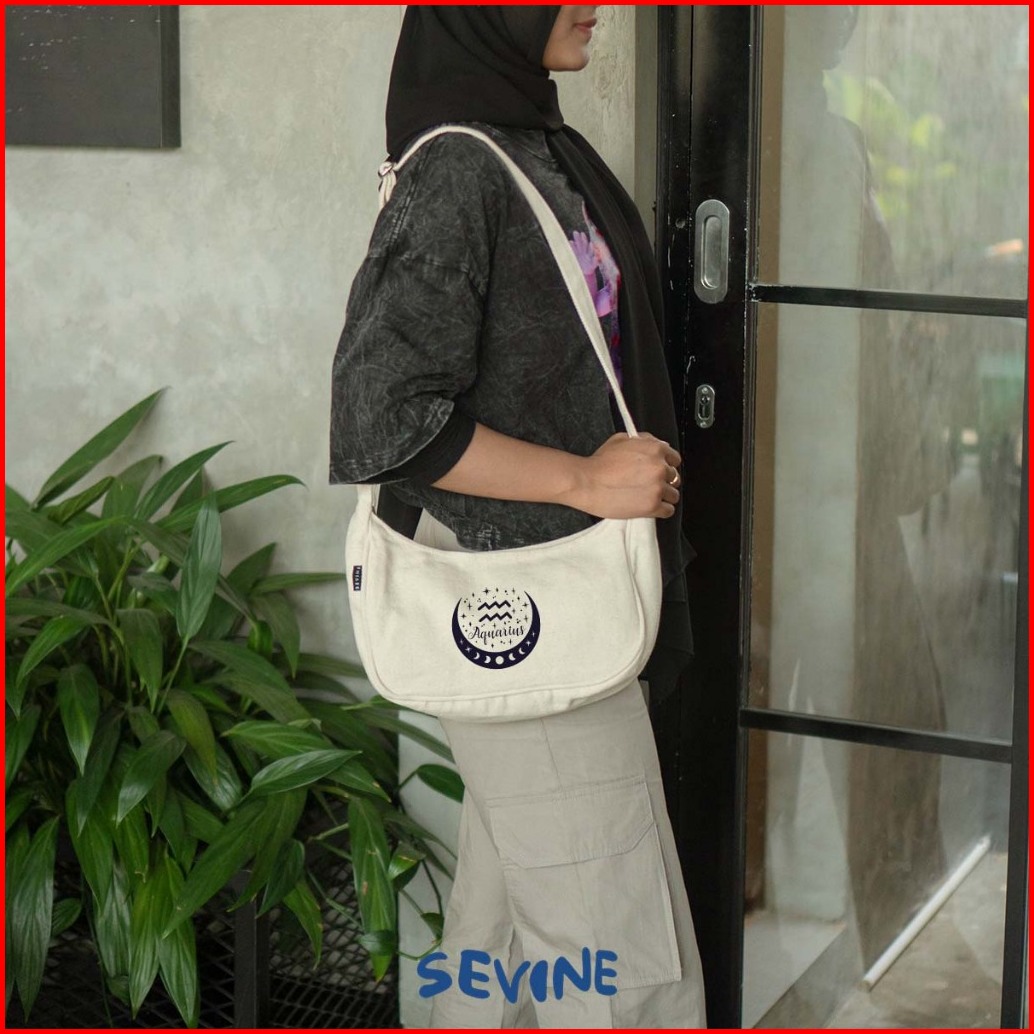 Sevine Luna Sling Bag Tas Selempang Wanita Shoulder Bag Resleting Kanvas Hand Bag Broken White - Lnt