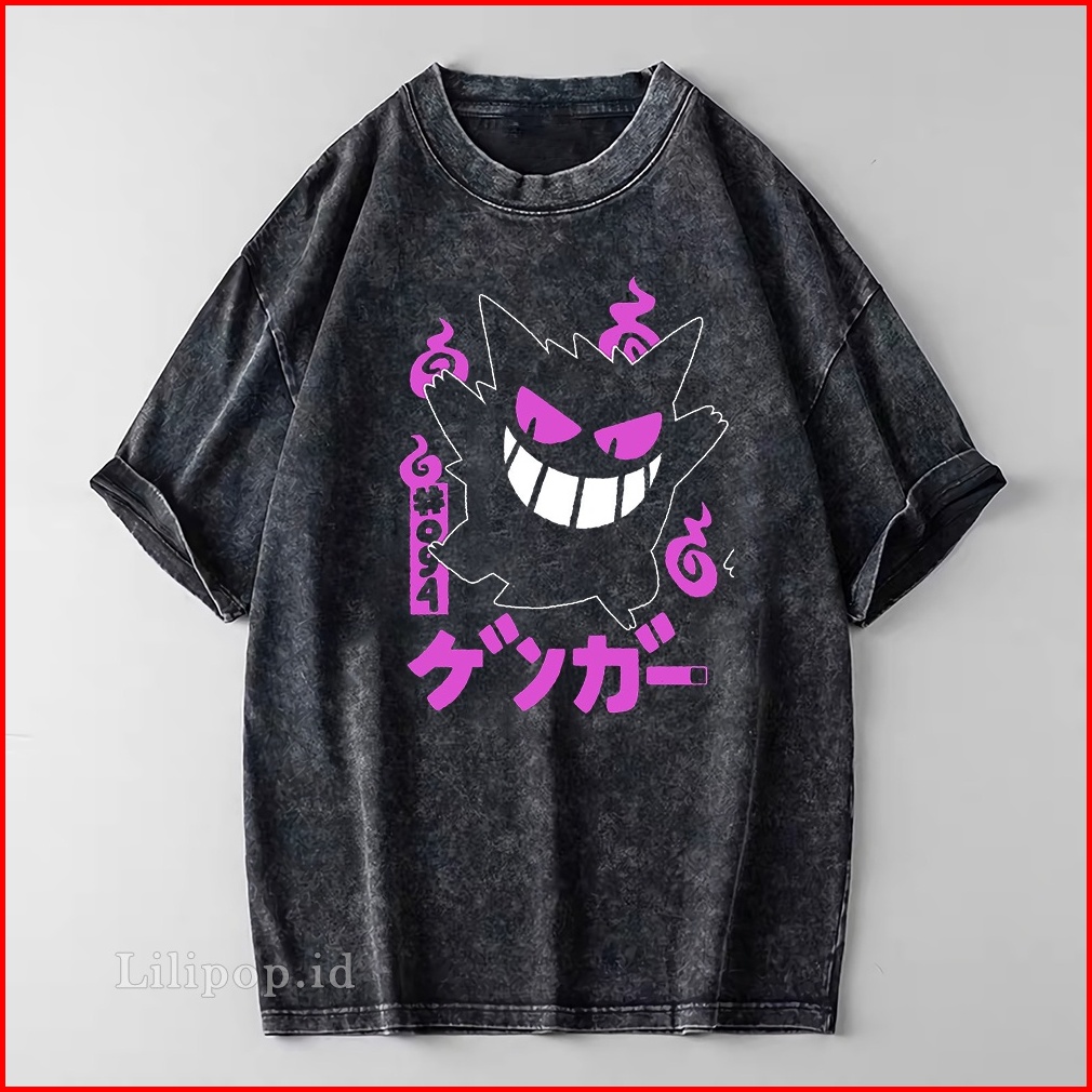 Kaos Baju Wash Tshirt Pokemon Pria Wanita Stone Wash Baju Distro Basic Lengan Pendek Unisex