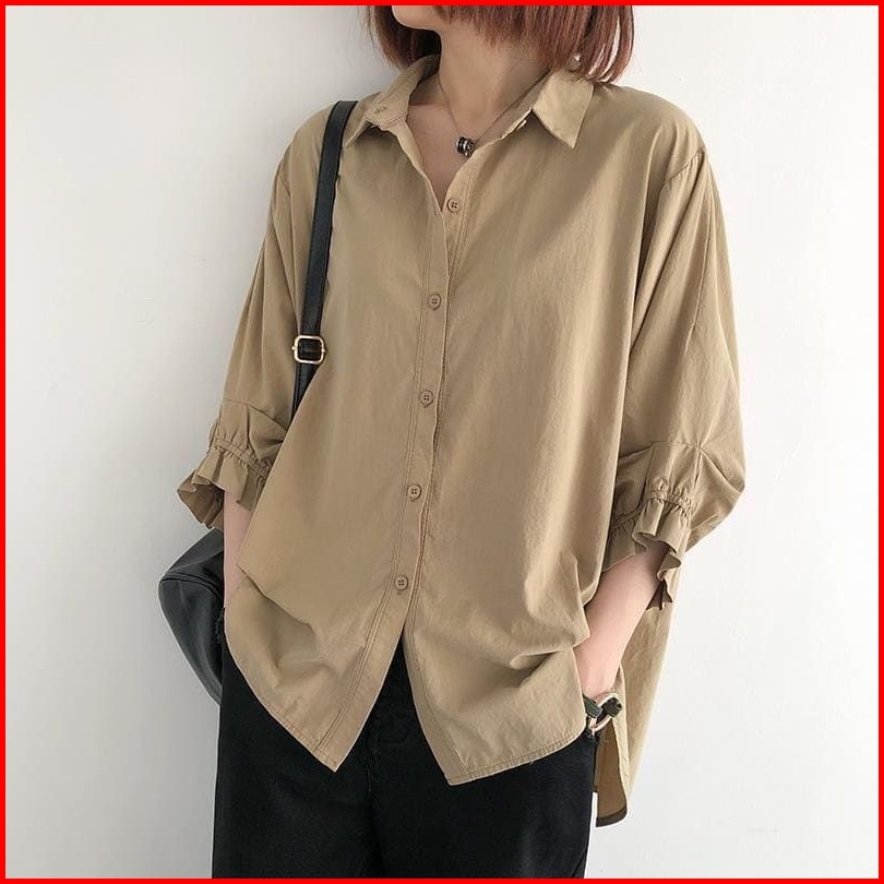 Odelia Shirt Kemeja Basic Wanita Korean Style Kemeja Wanita Lengan Panjang Tangan Kerut Blouse Kerja Wanita Atasan Wanit