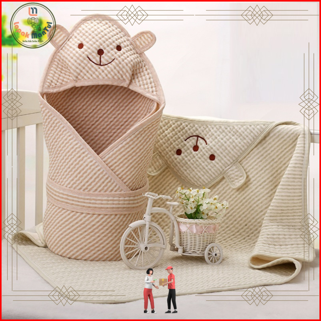 Lm-0063 Selimut Bayi Dengan Topi Lembut Tebal - Selimut Hoodie Bayi Motif Lucu Kualitas Super