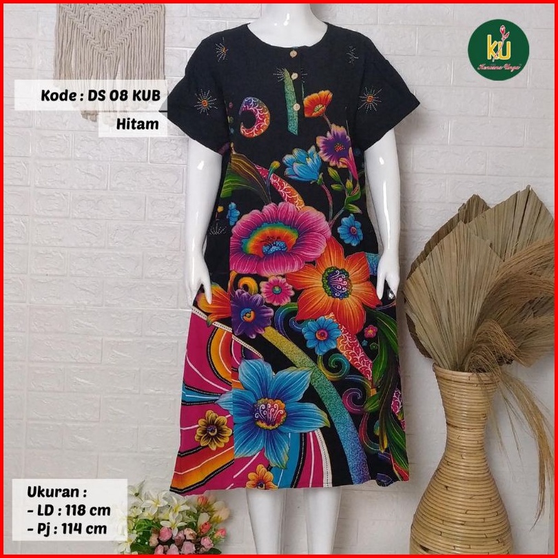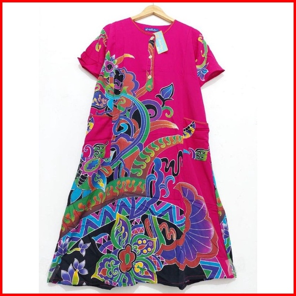 Daster 08 Kencana Ungu Lebel Biru Daster Batik Kencana Kancing Busui Lengan Pendek Ld.120 Cm Pb.115 Cm Baju Santai Wanit