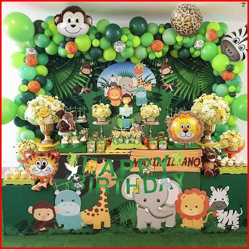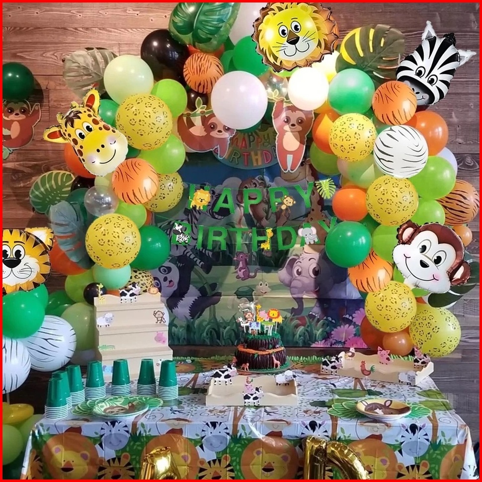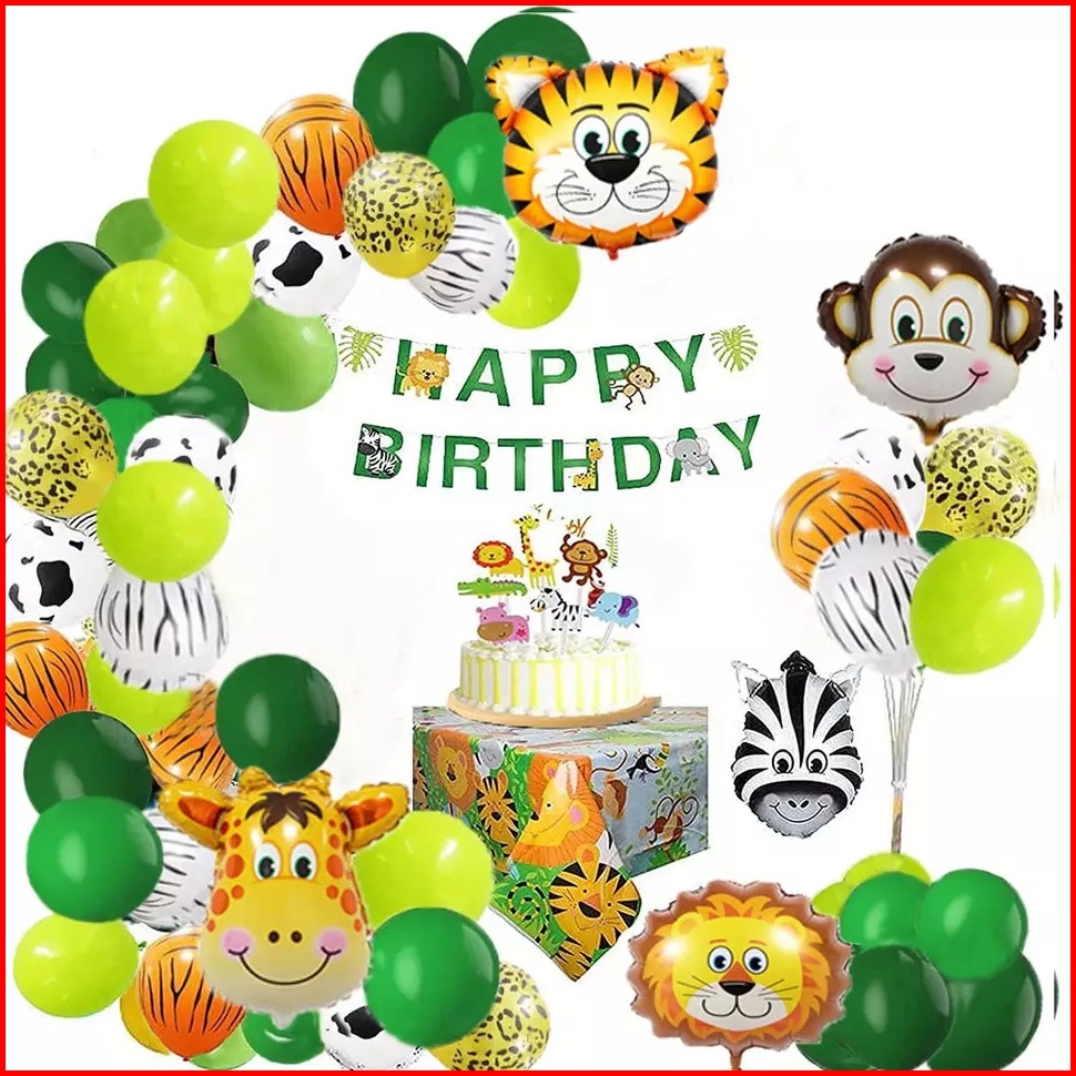 Set Balon Lateks Desain Hewan Hutan Safari Hawaii Untuk Dekorasi Pesta Ulang Tahun Anak Laki-laki