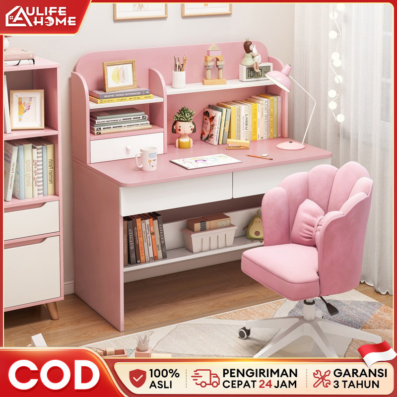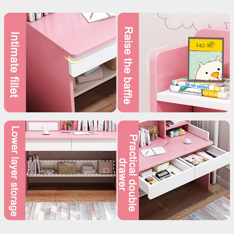 100/120CM Meja Belajar Anak Meja Komputer Siswa Meja Tulis Anak Meja Kamar Tidur Dengan Rak Buku