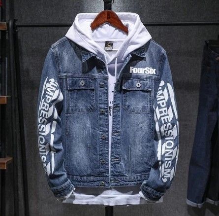 Jaket Jeans New Model Printing Sablon DTF Bahan Denim Jaket Pria Casual size M/L/XL/XXL