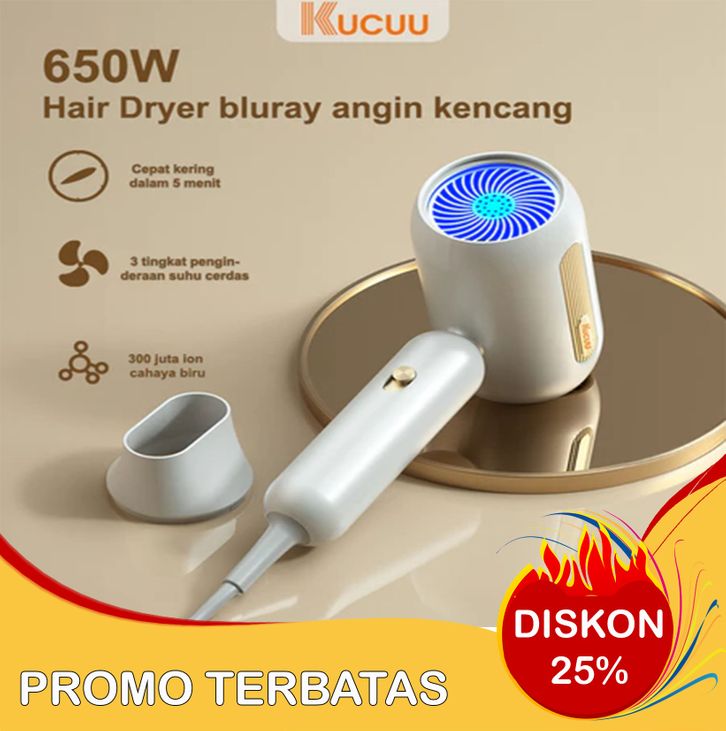 NEW KUCUU Hair Dryer Negative Ion Portable Low Watt 650w Pengering Rambut Hair Protection Quick Drying Bergaransi 1 Tahu