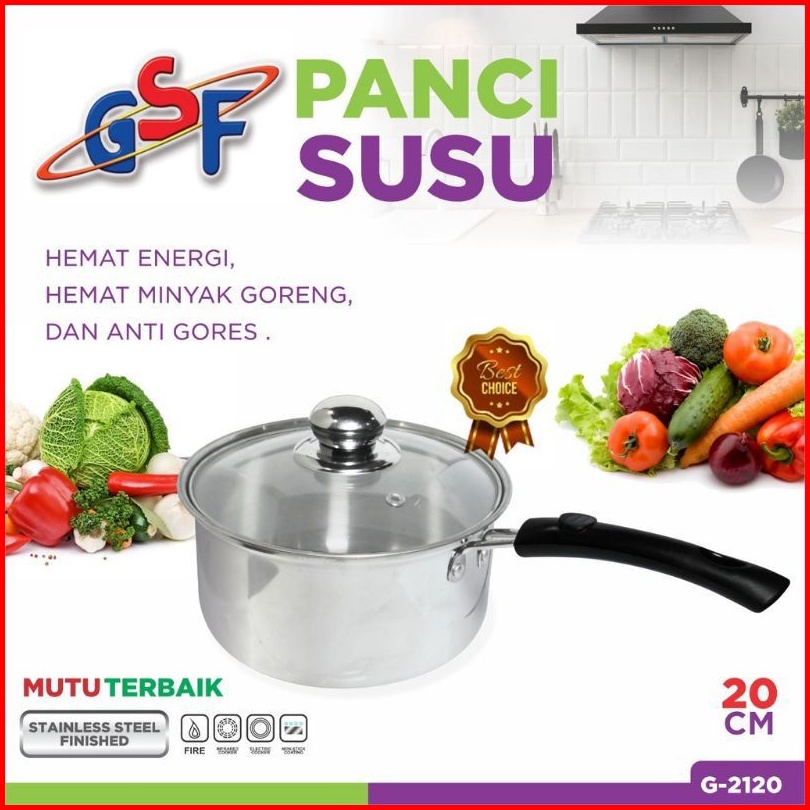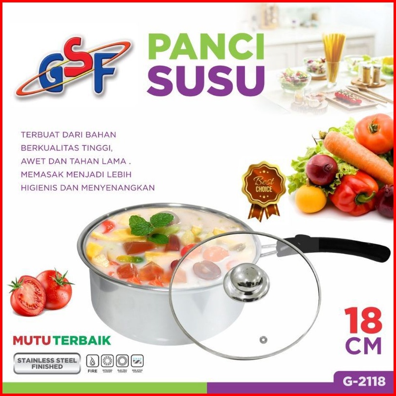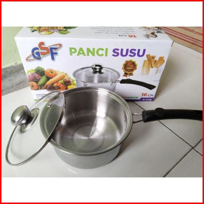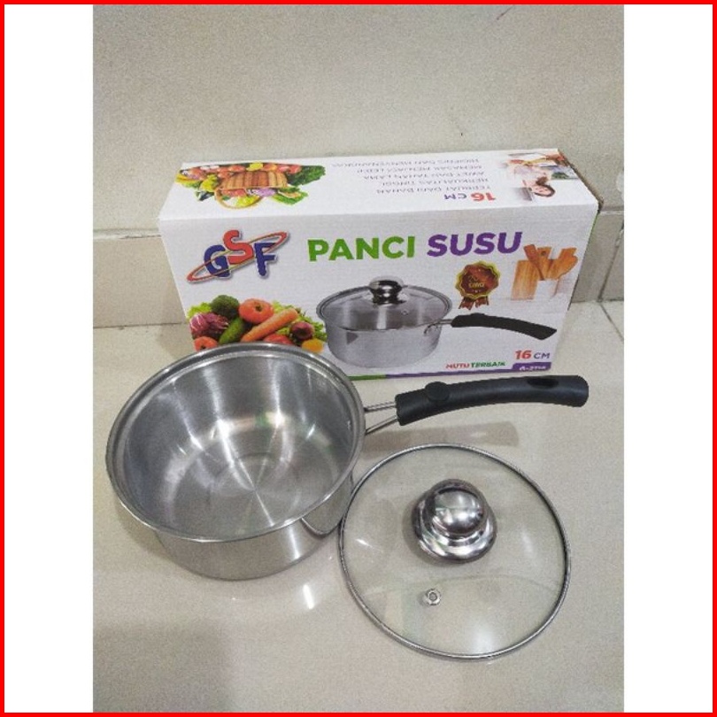 Panci Susu Stainless Tutup Kaca Gsf Ukuran 16 18 20 Cm