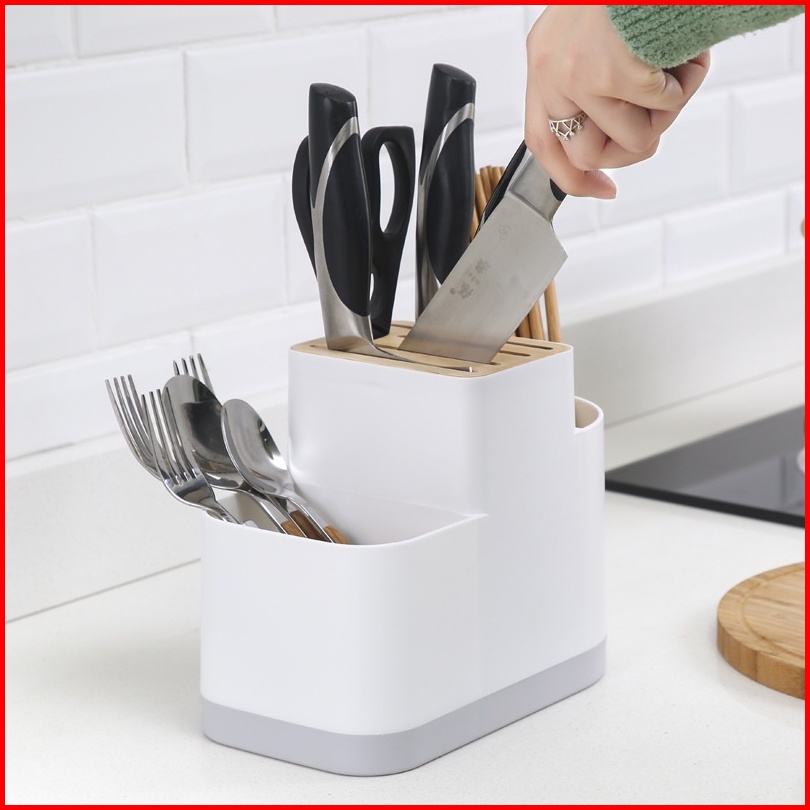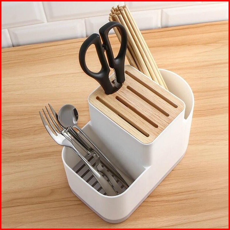 Rak Tempat Wadah Pisau Dapur Sendok Sumpit Desain Kayu Aesthetic Minimalis