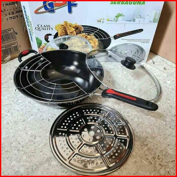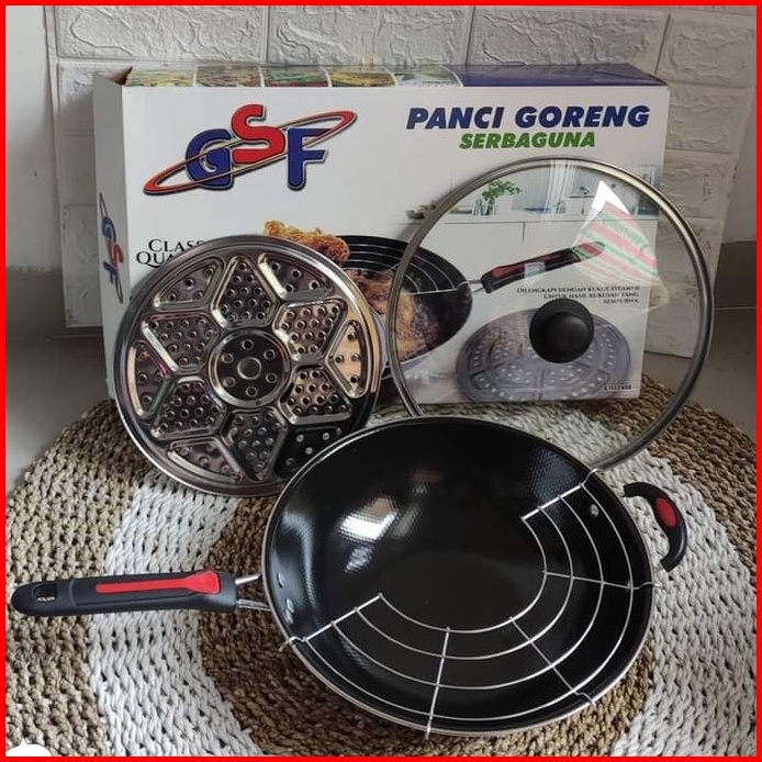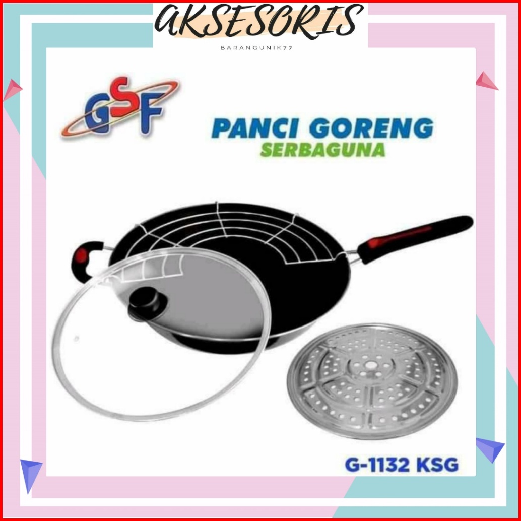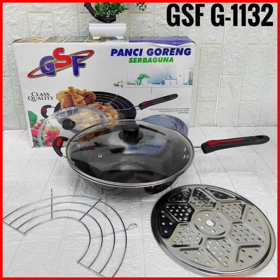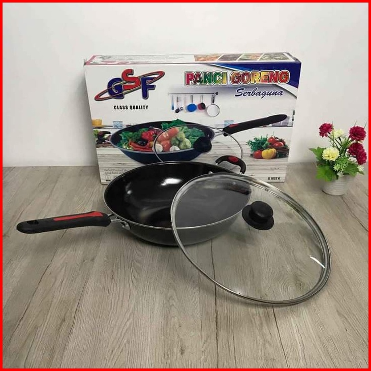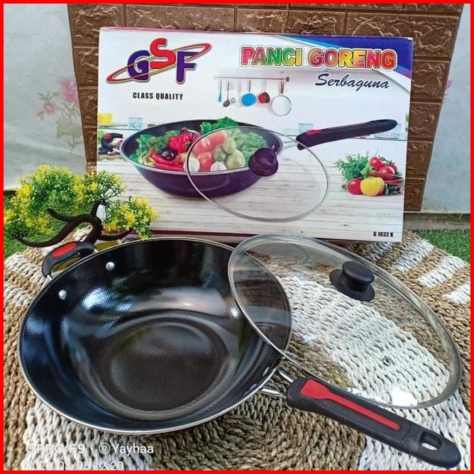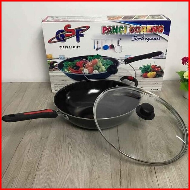Panci Wajan Goreng Penggorengan Serbaguna Teflon Tutup Kaca Gsf 1032k 1032 K Ukuran 32cm Dan 1132