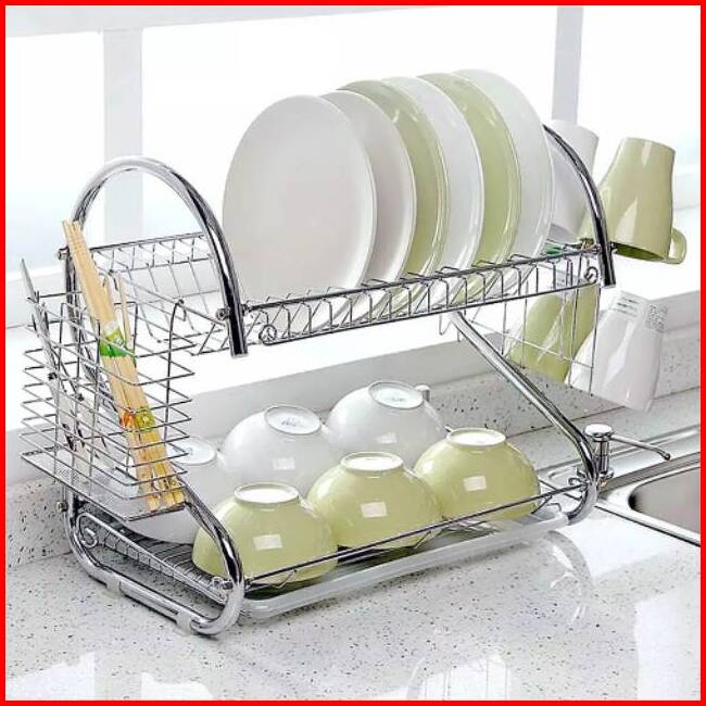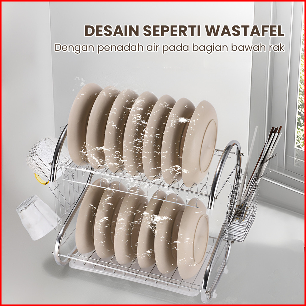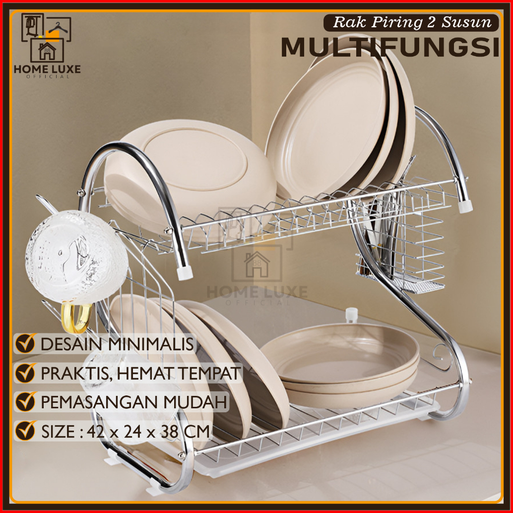 Homeluxe Rak Piring Stainless 2 Susun Rak Piring 2 Tingkat Stainless Rak Dapur Serbaguna