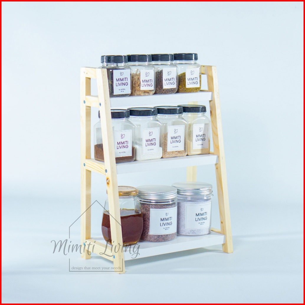 Rak Bumbu Dapur Serbaguna 3 Susun Medium Rak Kosmetik Rak Kayu Serbaguna Multifungsi