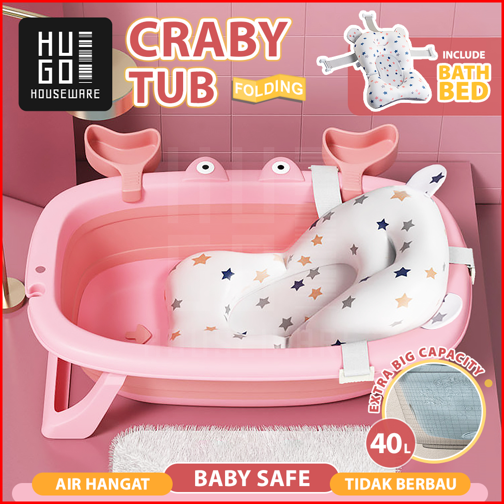 Hugo Foldable Baby Bathtub Bak Mandi Bayi Lipat Portable Tempat Mandi Bayi Silicone Dengan Bantal Mandi