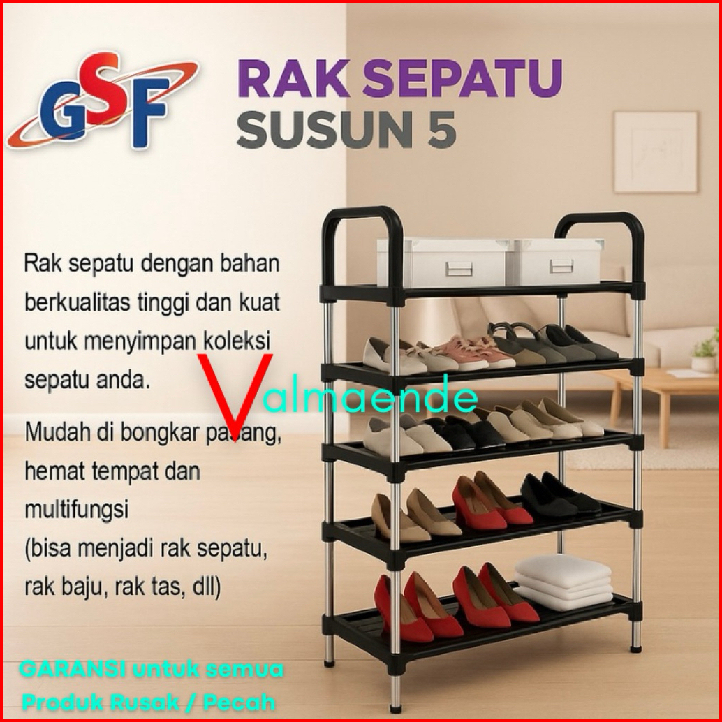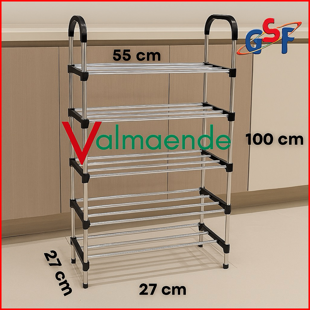 Rak Sepatu Susun 5 Tingkat Stainless Steel Tempat Sepatu Sandal Gsf 3105 4105 Rak Serbaguna