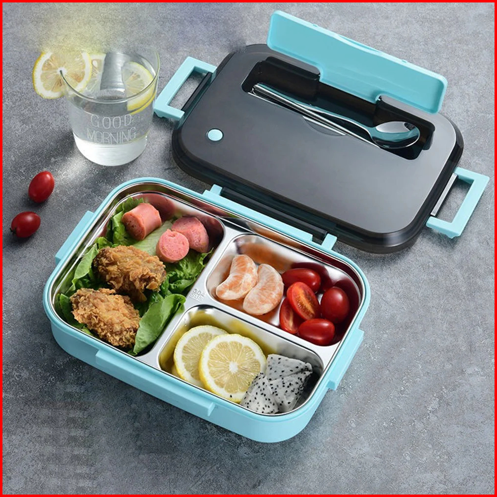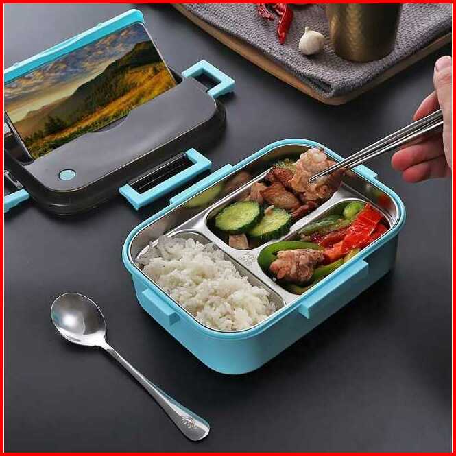 Kotak Makan Bekal Anti Tumpah Stainless Steel 3 Sekat Lunch Box 1300ml