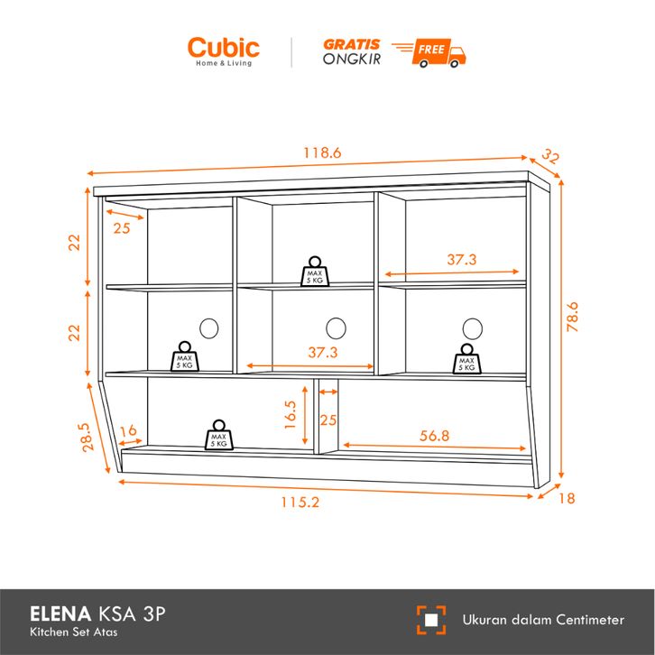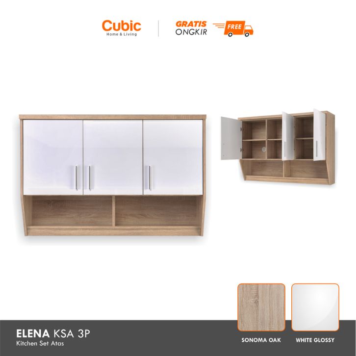 Cubic Kitchen Set 3 Pintu Minimalis / Rak Atas Dapur / ELENA AVE KSA 3P - Hitam / Putih