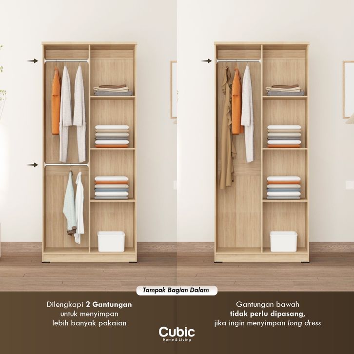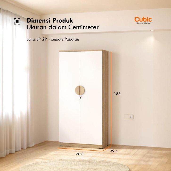 Cubic Lemari Pakaian Minimalis / Lemari Baju 2 Pintu / LUNA LP 2P - HM