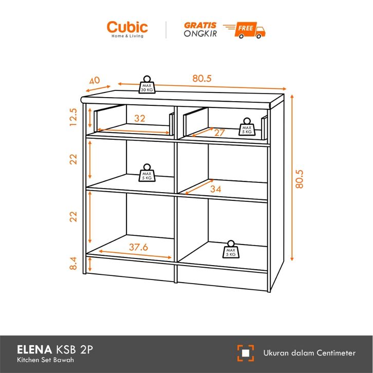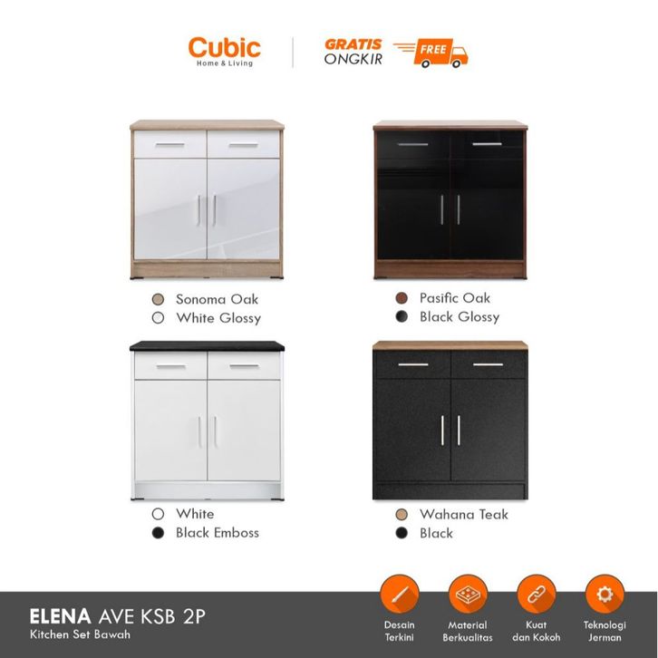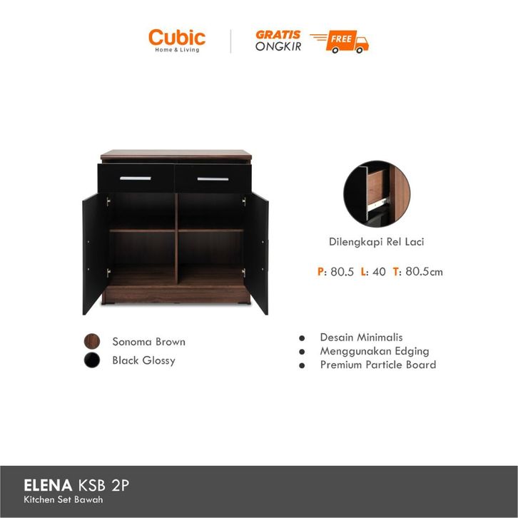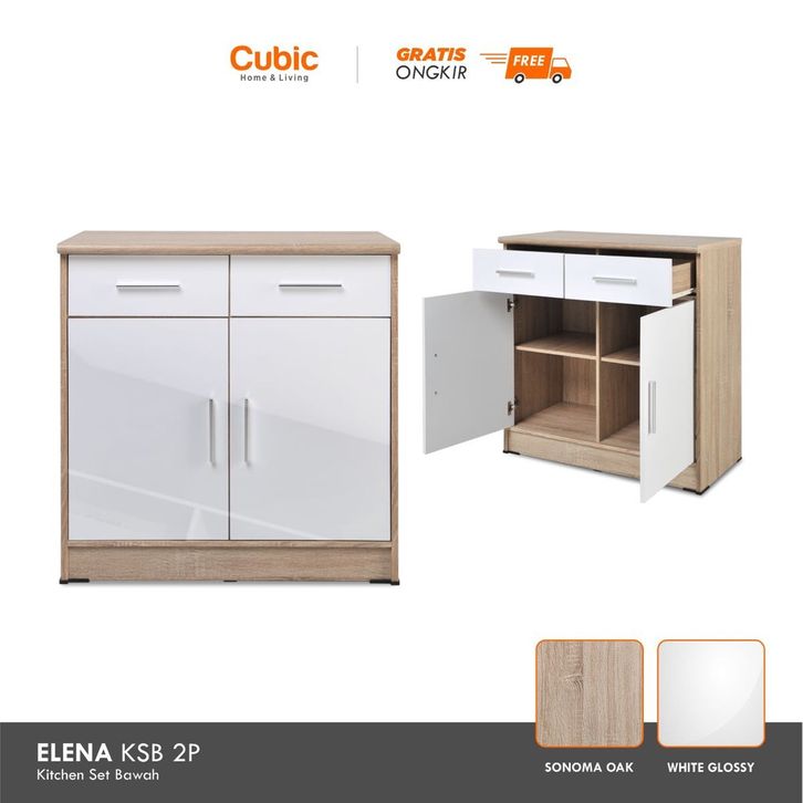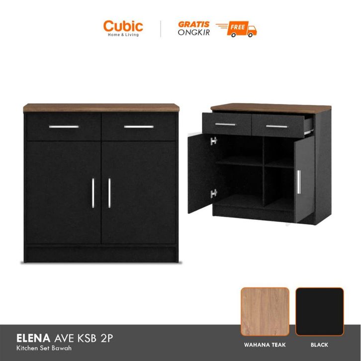 Cubic Kitchen Set 2 Pintu Minimalis / Rak Bawah Dapur / ELENA AVE KSB 2P - Putih / Hitam