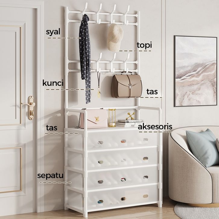 Homestorage Rak Sepatu Tahan Debu Serbaguna Gantungan Tas Pakaian Rak Sepatu Susun Tertutup/ Rak Penyimpanan Dengan Pe