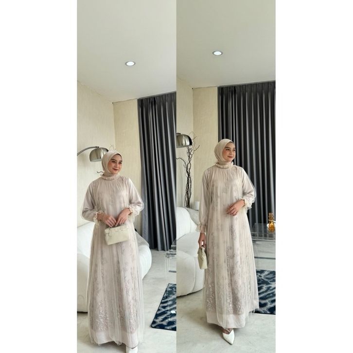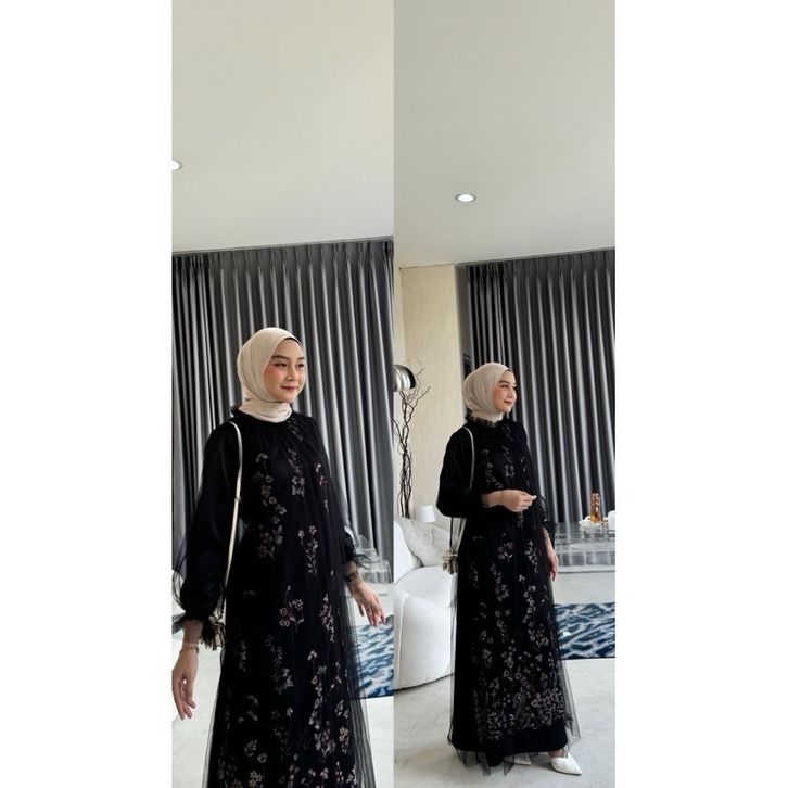 PROMO FREE BROSS REVINA DRESS BUSUI + OUTER TILLE BRUKAT GARDEN FREE BELT FASHION GAMIS MUSLIM