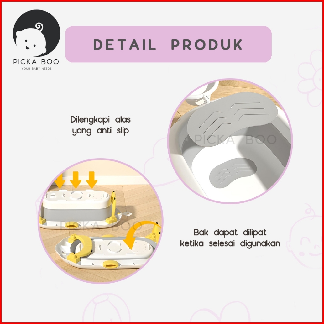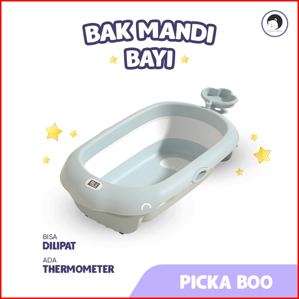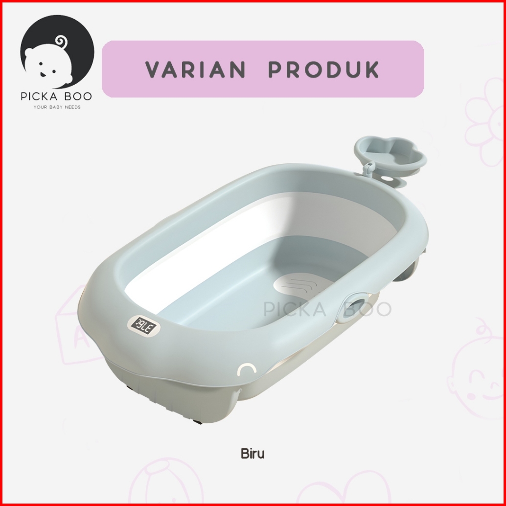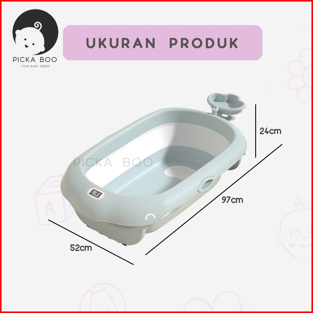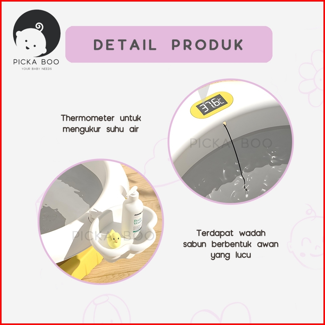 Picka Boo Foldable Baby Bath Tub Bak Mandi Bayi Lipat Dengan Pengukur Suhu Dan Bantal Mandi Tempat Mandi Bayi Portable T