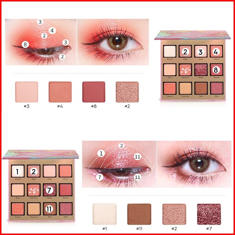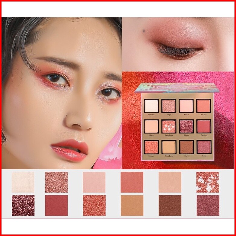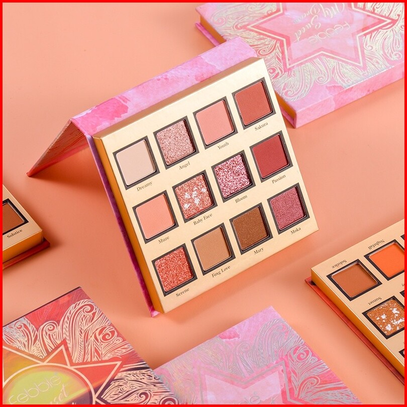 Bpom Ohsome - Febble 12 Colors Eyeshdow Palette Palet Eyeshadow Dewey Finish Makeup Baked Eyeshadow-pink Sweetheart