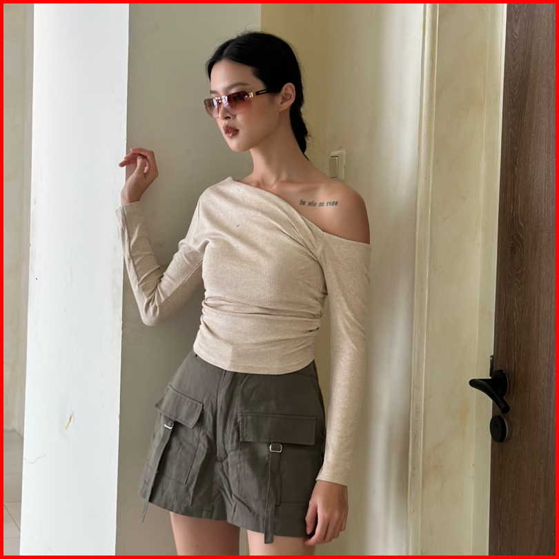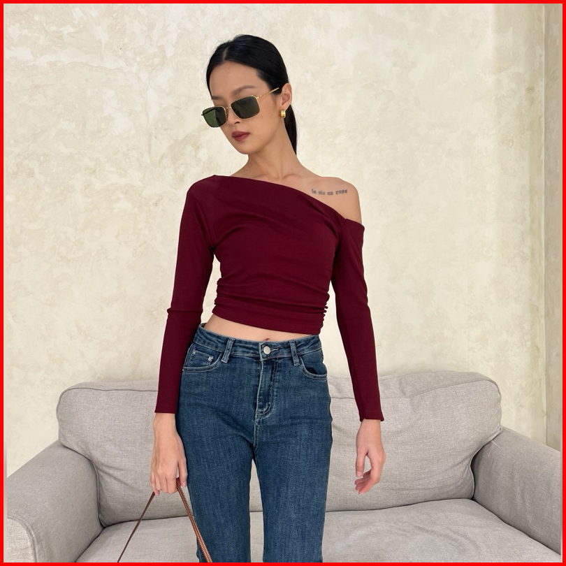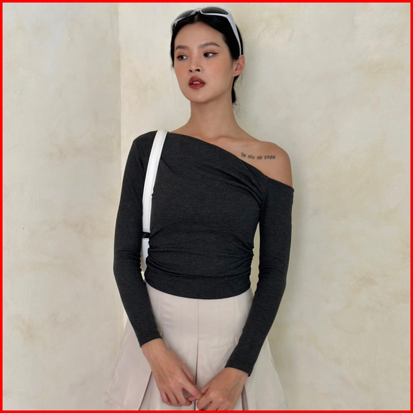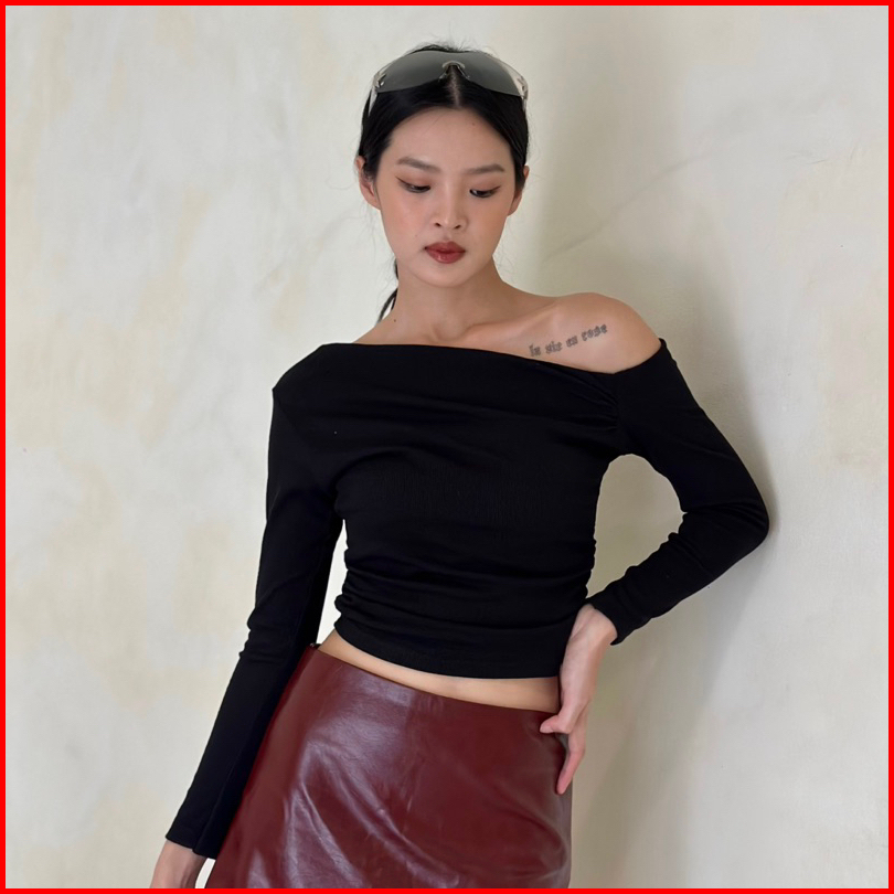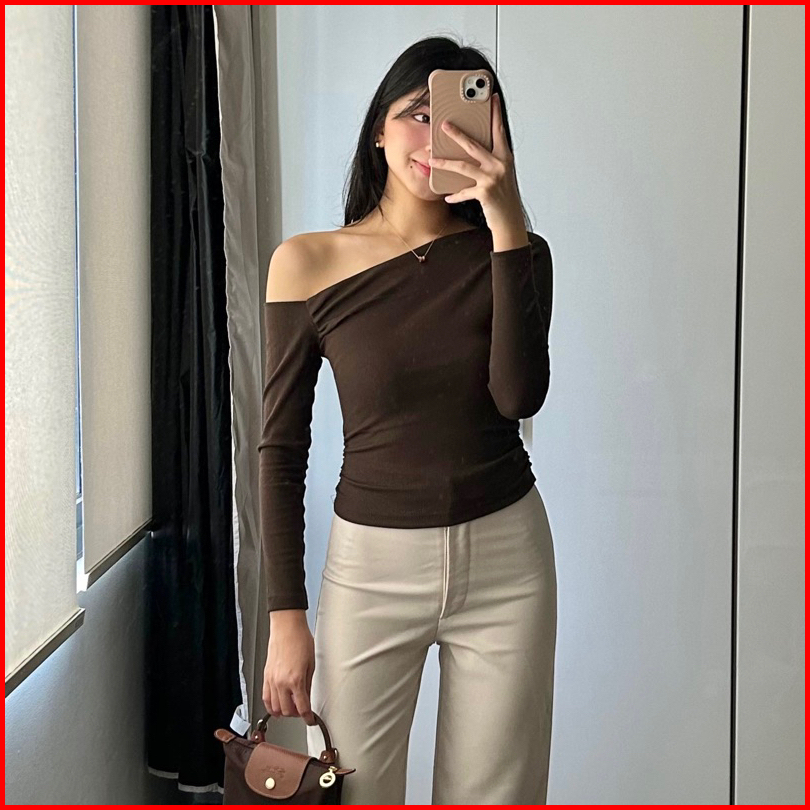 Ilse Top Lale Atasan Rib Rajut Ribbed Knit Basic Top Sabrina Longsleeve Lengan Panjang Off Shoulder Stretch