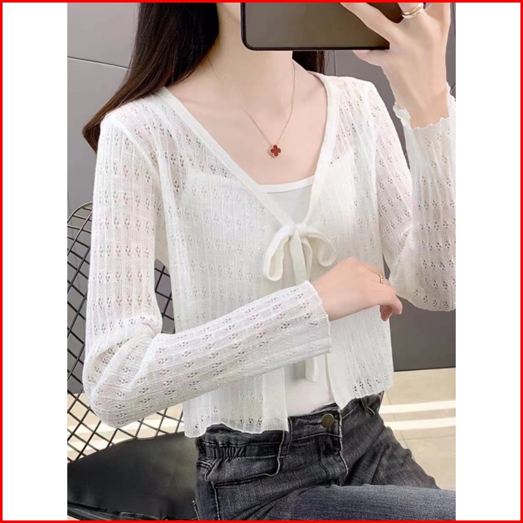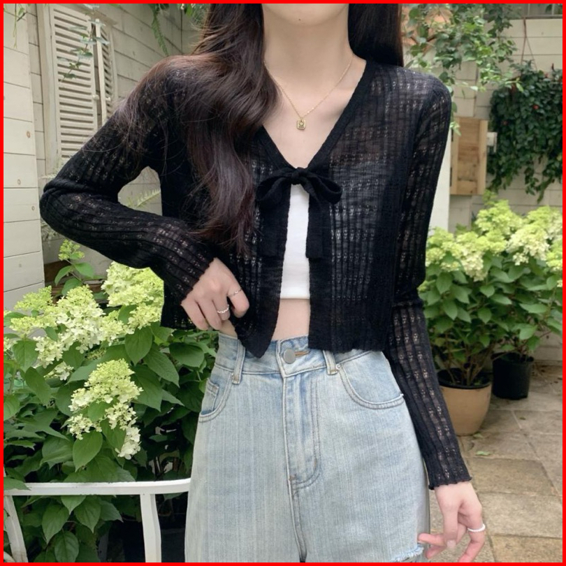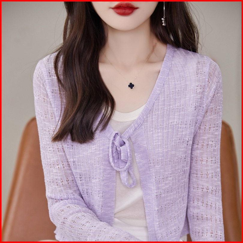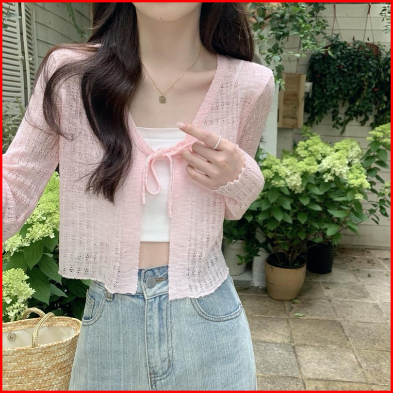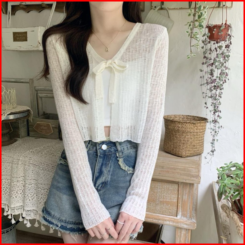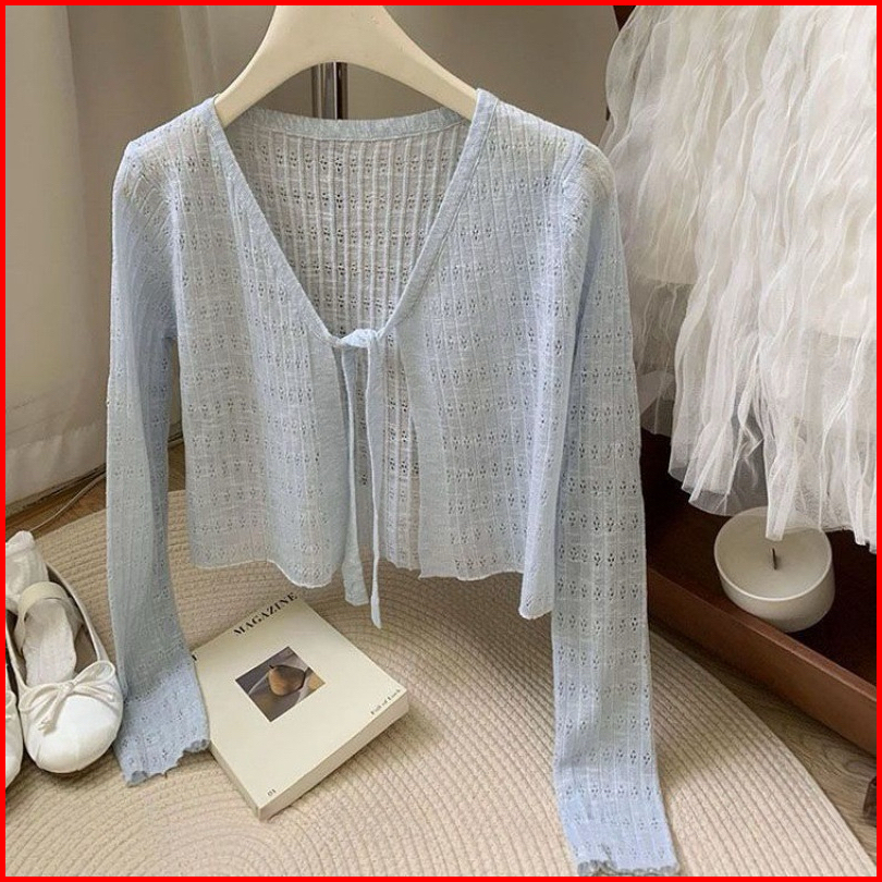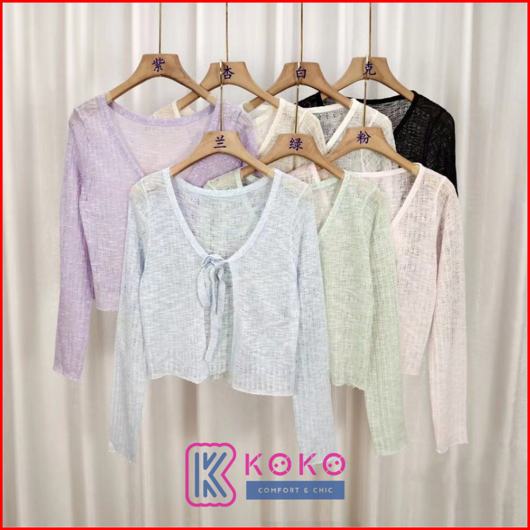 Koko - Cardigan Rajut Bertali Kerah V Lengan Panjang Wanita Cewek