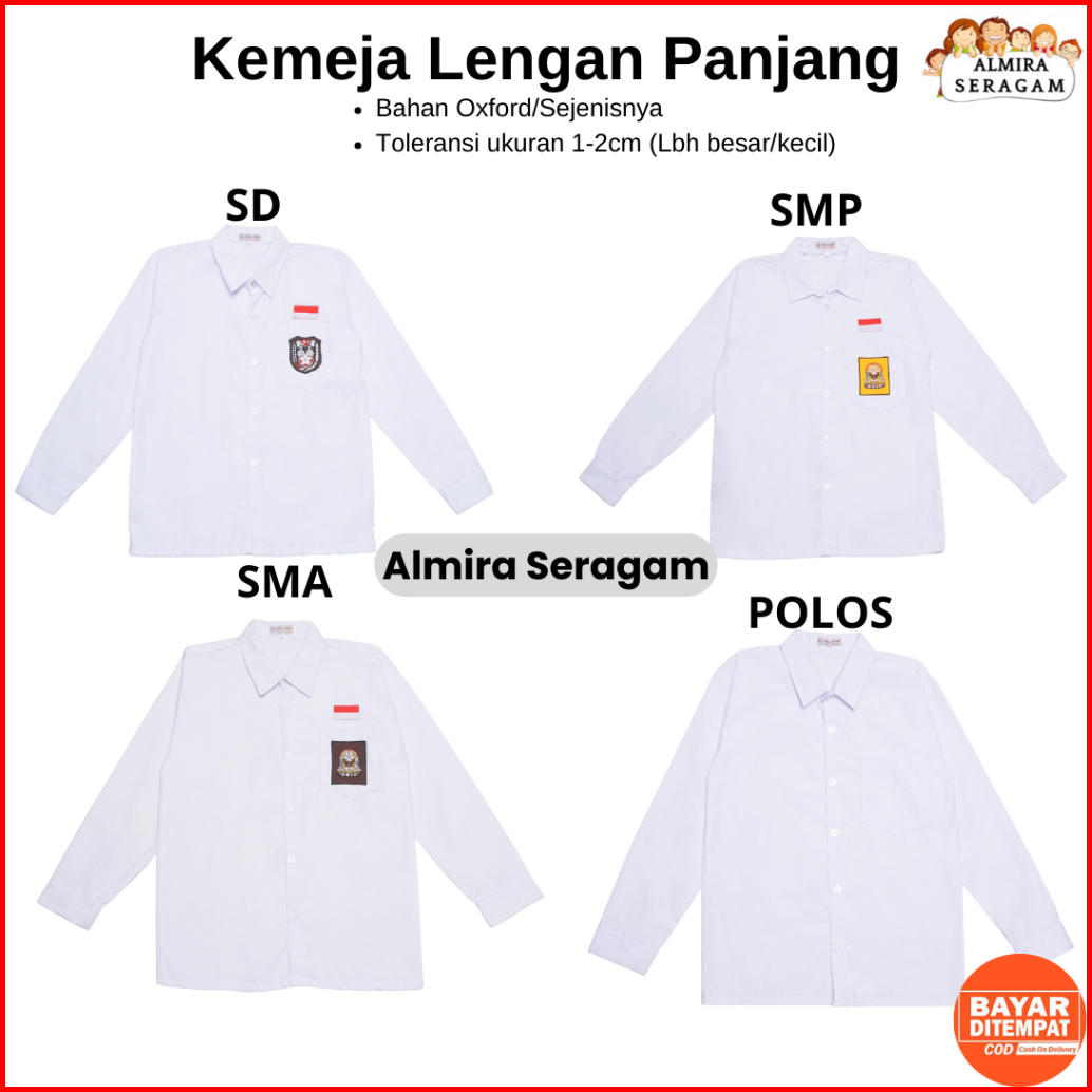 Kemeja Putih Lengan Panjang Sd Smp Sma Baju Almira Seragam Sekolah Sd Smp Sma Tebal Oxford Logo Bordir